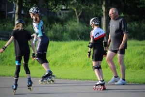 Gisteravond weer een leuke skeelertraining gedaan op de mooie baan in Baambrugge. Zelfs de ouders moesten aan de slag met de oefening!