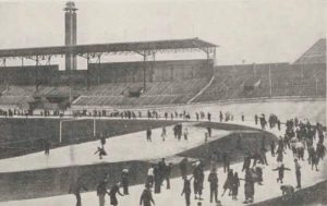 De eerste keer dat er in het Olympisch Stadion werd geschaatst, was op 22 december 1929, nota bene rond het voetbalveld waar Blauw-Wit en Feyenoord op hetzelfde moment een officiële wedstrijd speelden! ‘De Blauw-Witscheidsrechter maakte tot groot amusement van het publiek ’n tuimeling toen hij plots op het ijs terechtkwam,’ schreef De Revue der Sporten.