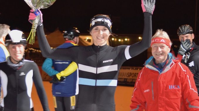 Ik doe er geen 111 hoor, maar de strijdlust bij haar komt dan echter toch weer boven en de rondjes gingen zo lekker (zei ze achteraf) dat beide dames, uiteindelijk met een groep mannen in het kielzog de 111 ronden volbrachten.  Ze lagen daarbij uiteindelijk een goede 10 ronden achter de winnaars bij de mannen.