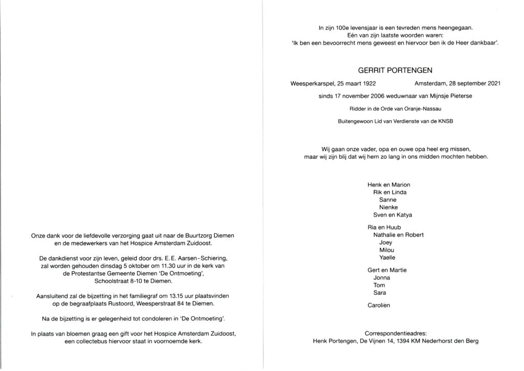 Gerrit Portengen (99) overleden, buitengewoon lid van verdienste