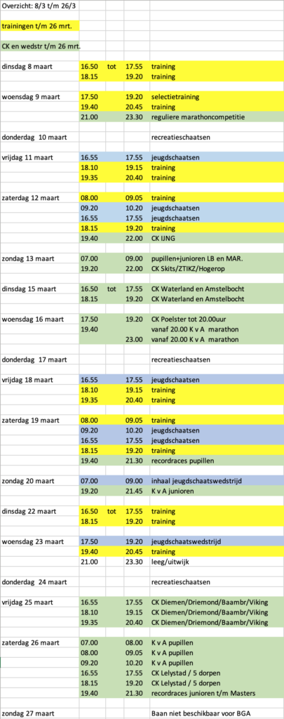 Ik heb hieronder, na overleg met Jan van der Harst, als TC man van de BGA en beheerder van de wedstrijdkalender contact gehad en ik zet hieronder alles voor ieder op een rij.