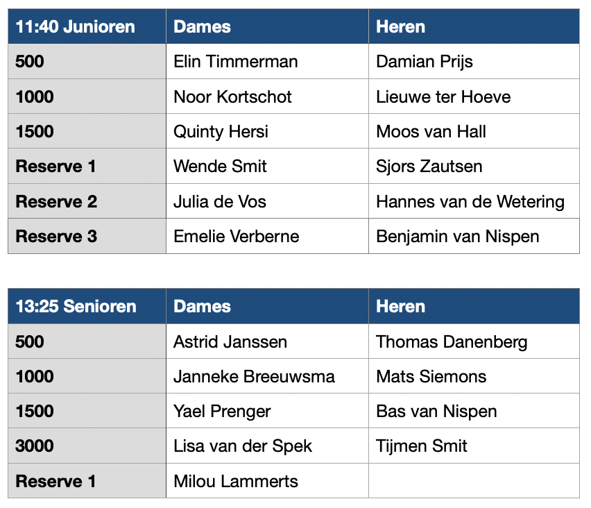 De reserves rijden allemaal een 500m (zij komen dus niet voor niks).