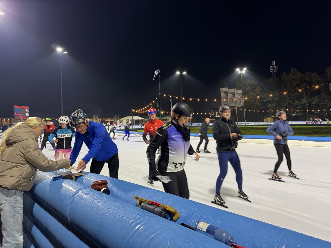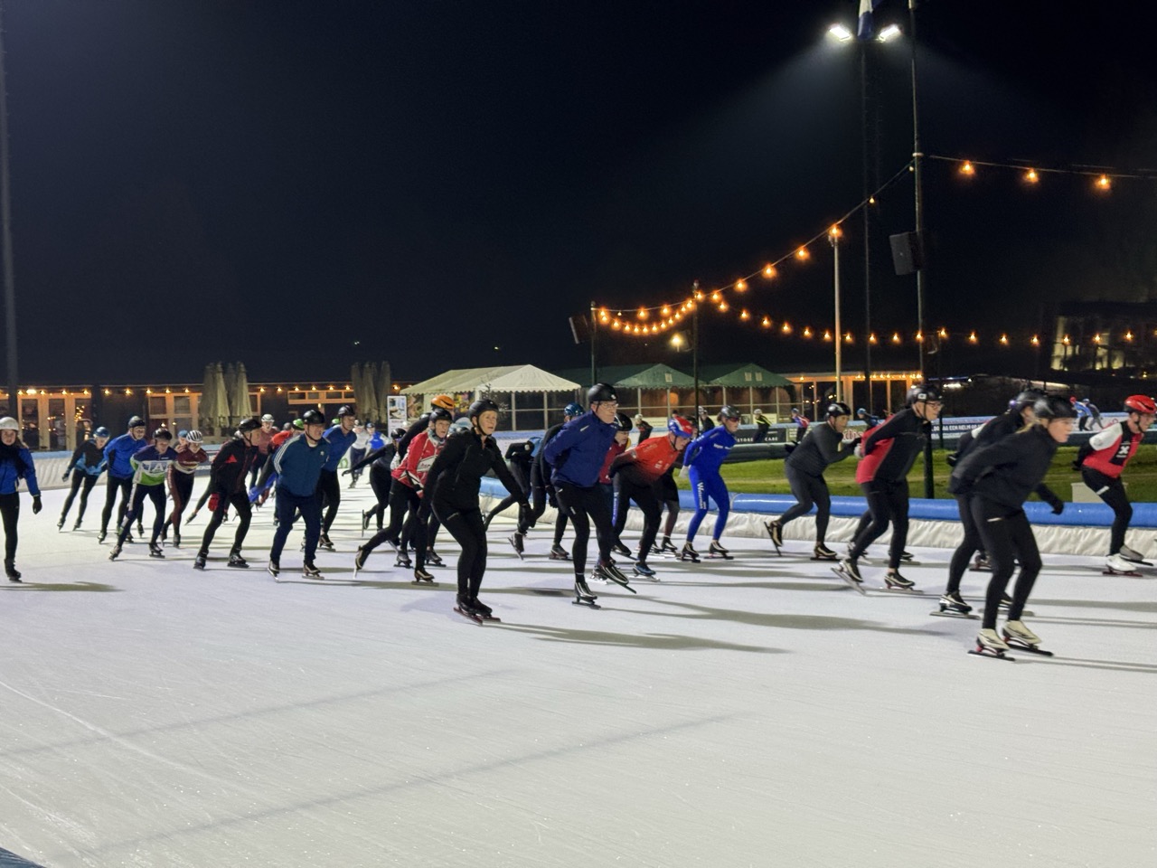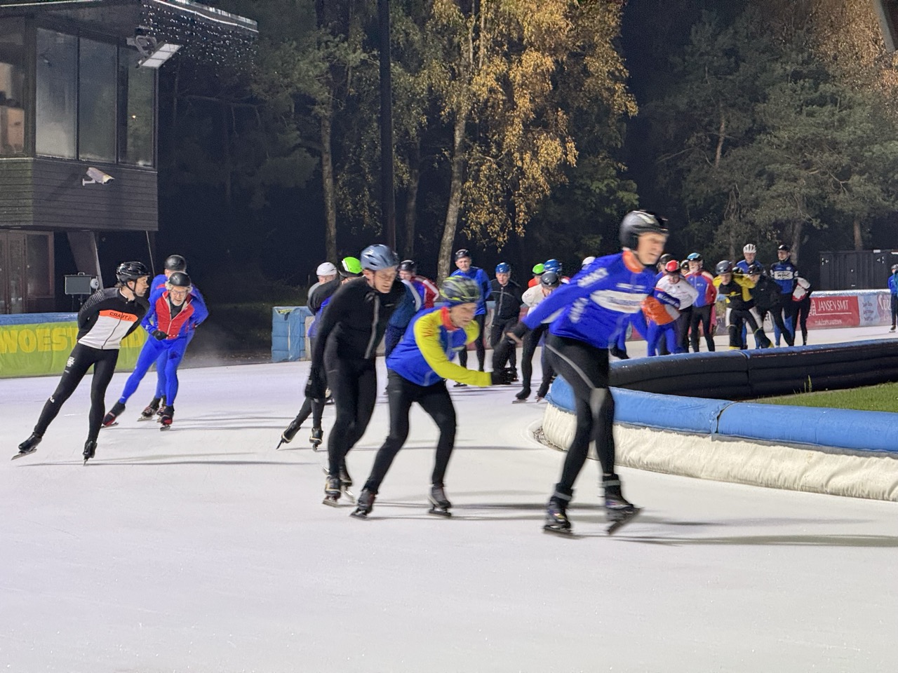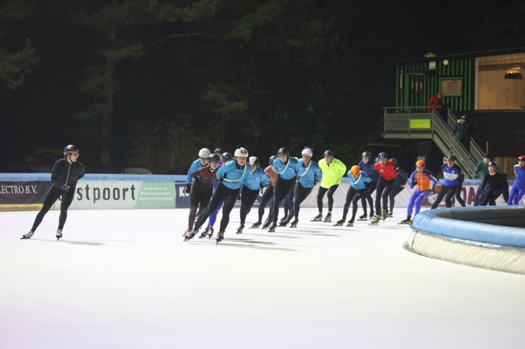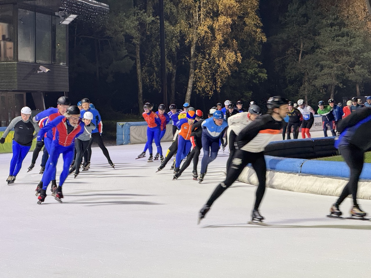 Zodoende stonden er om 21.11 uur ongeveer 200 deelnemers te trappelen om te starten, die na de stempelkaart controle het ijs op mochten. De start begon een paar minuten later dan gepland, omdat de ijsmachines nog niet klaar waren met de extra dweil in de beperkte tijd tussen het trainingsuur en de start. Dat bracht de deelnemers niet van hun stuk, want die hadden er zin om hun ronden te gaan rijden op deze mooie droge avond.