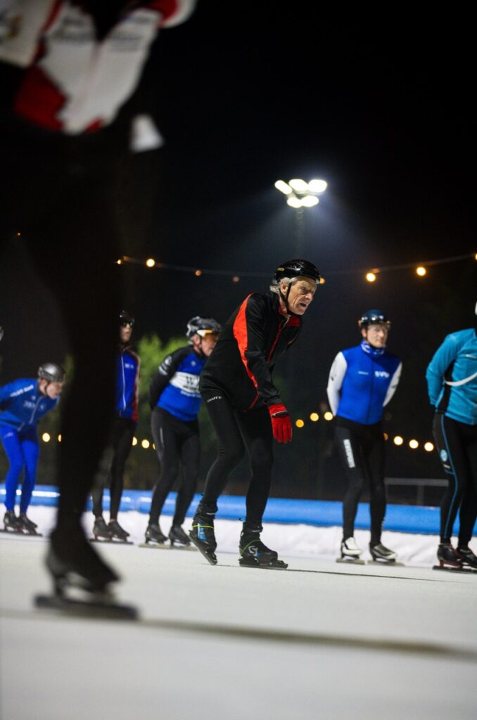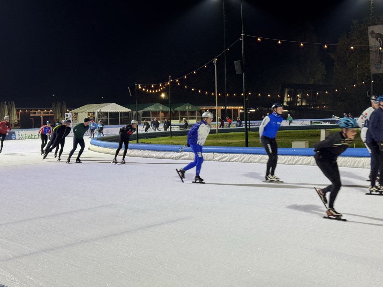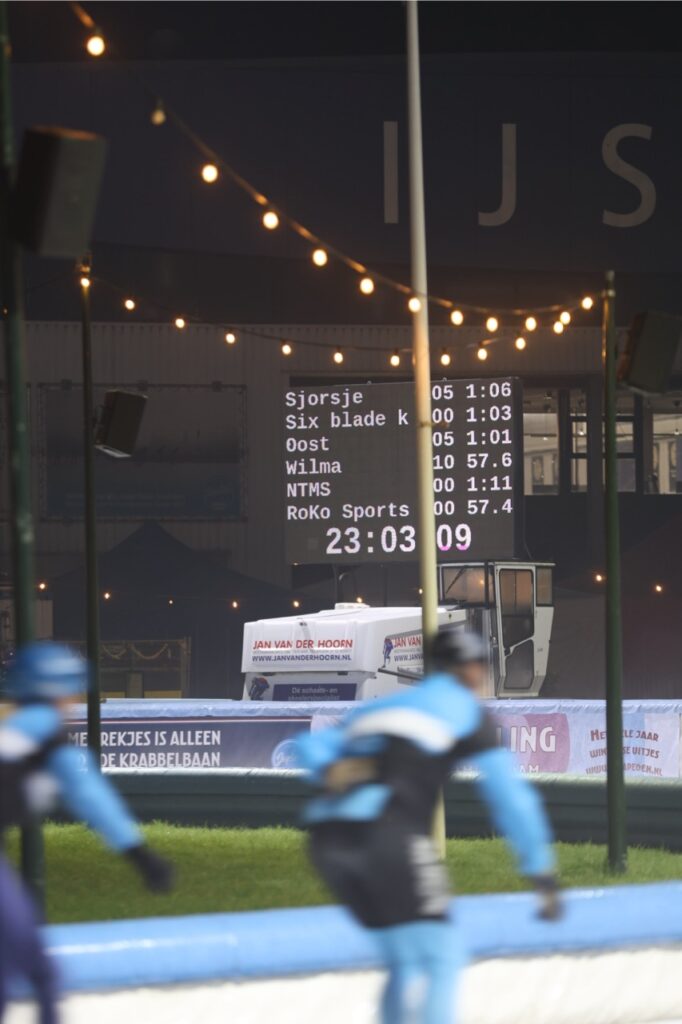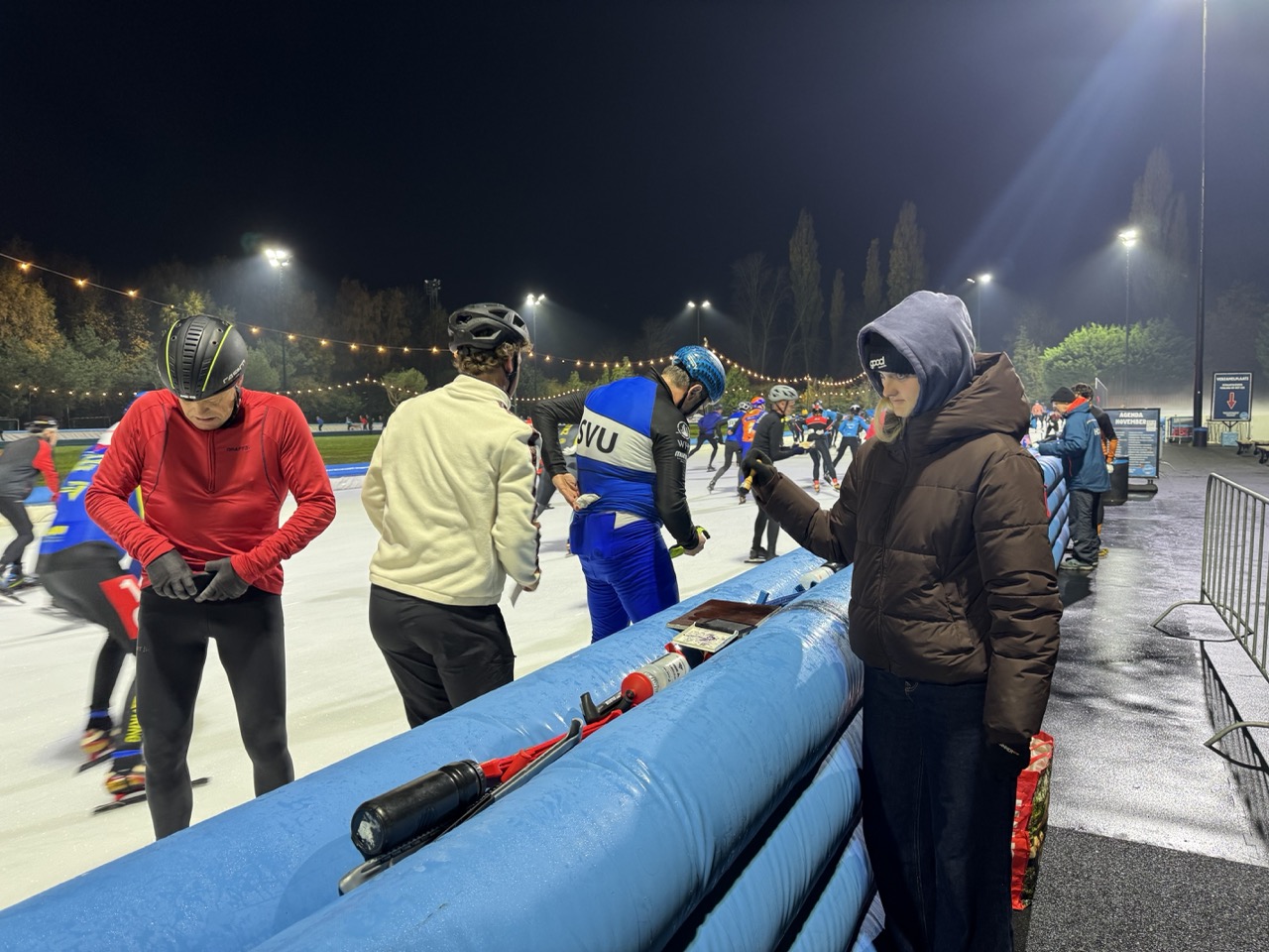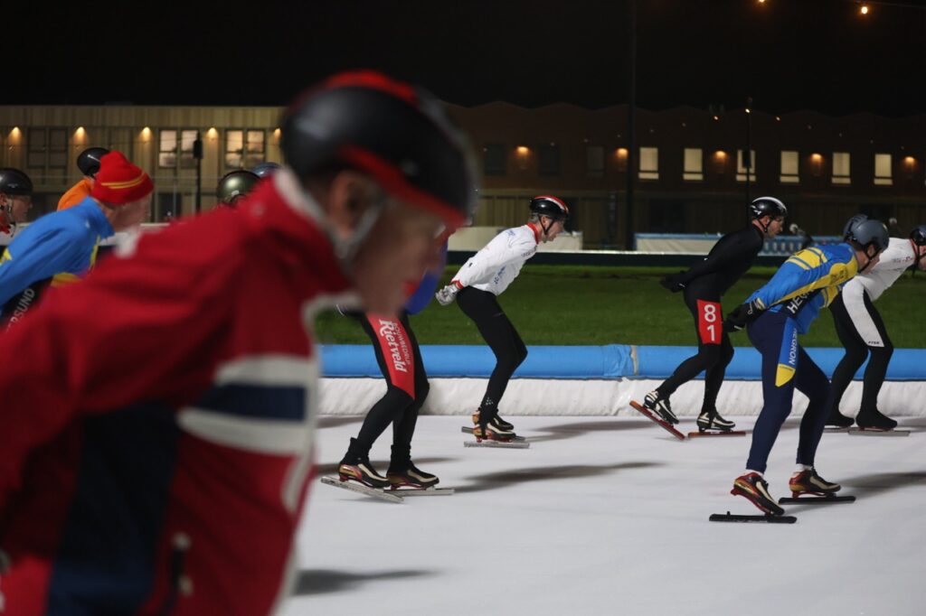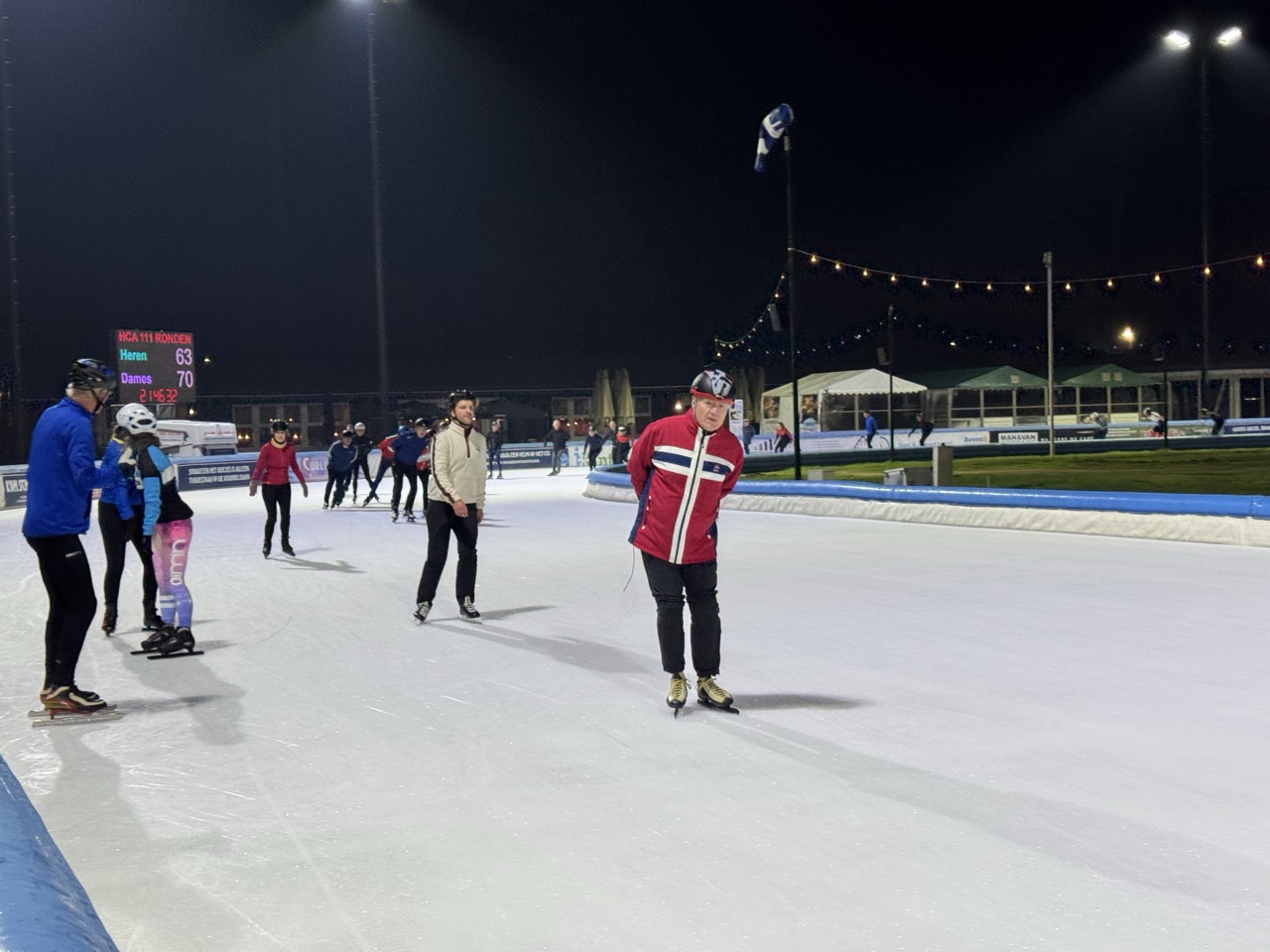 Zodoende stonden er om 21.11 uur ongeveer 200 deelnemers te trappelen om te starten, die na de stempelkaart controle het ijs op mochten. De start begon een paar minuten later dan gepland, omdat de ijsmachines nog niet klaar waren met de extra dweil in de beperkte tijd tussen het trainingsuur en de start. Dat bracht de deelnemers niet van hun stuk, want die hadden er zin om hun ronden te gaan rijden op deze mooie droge avond.