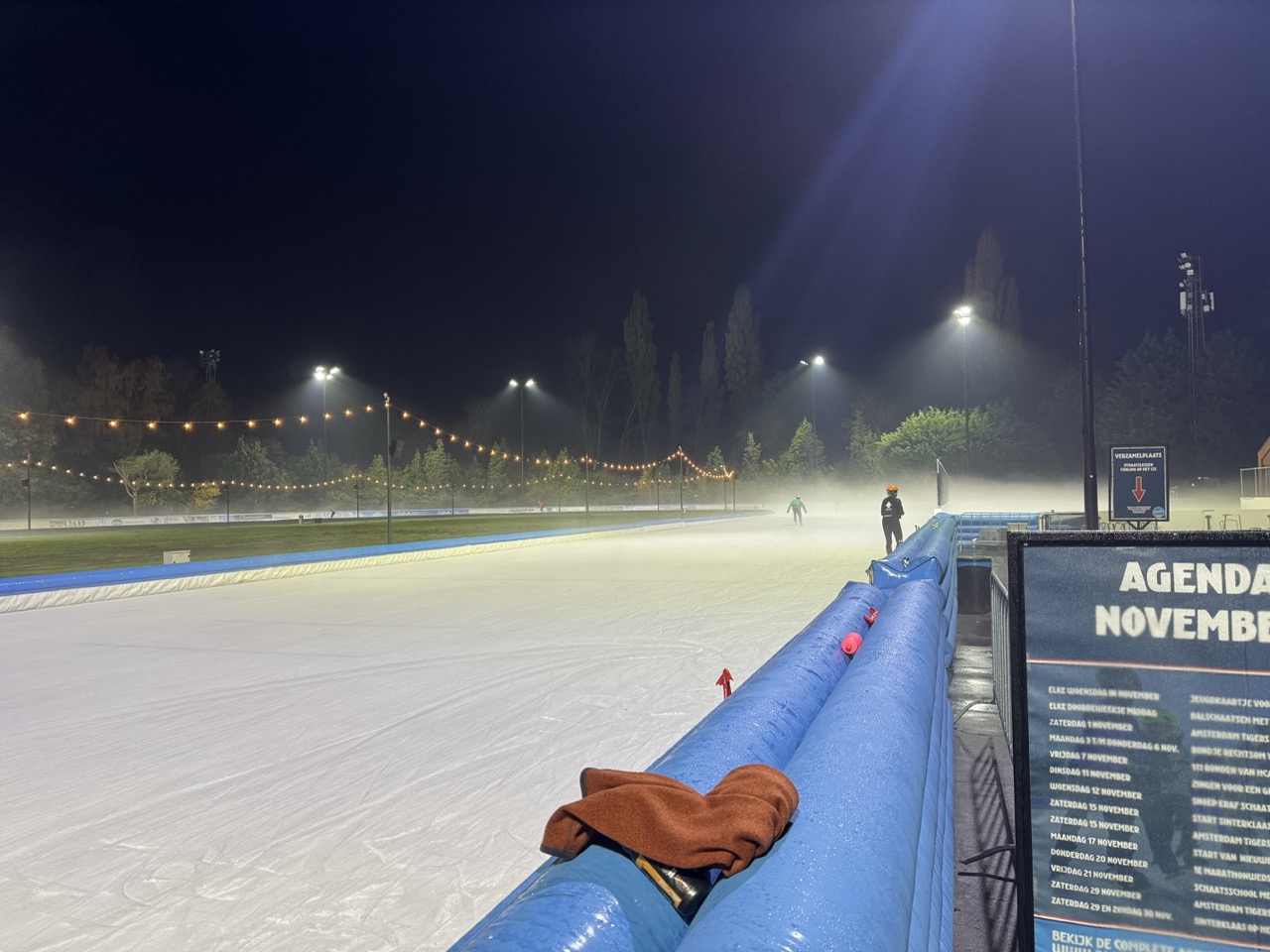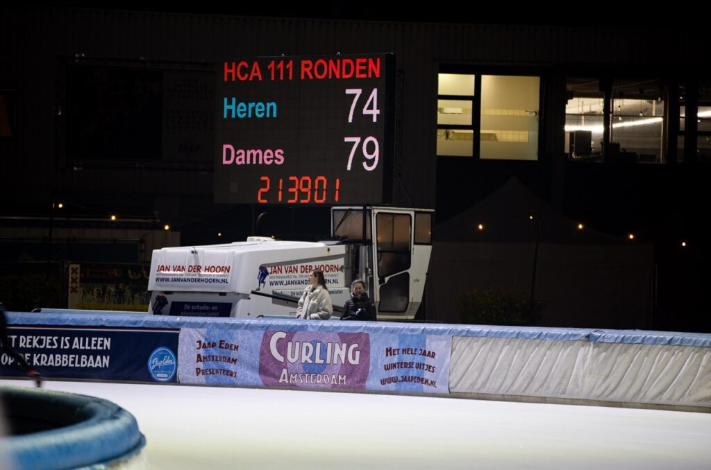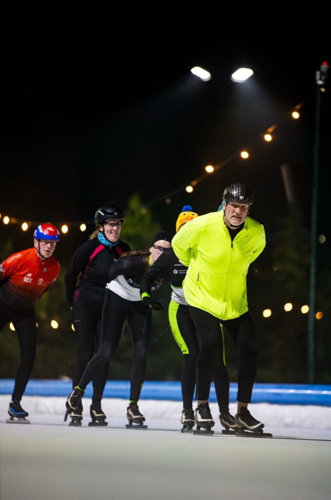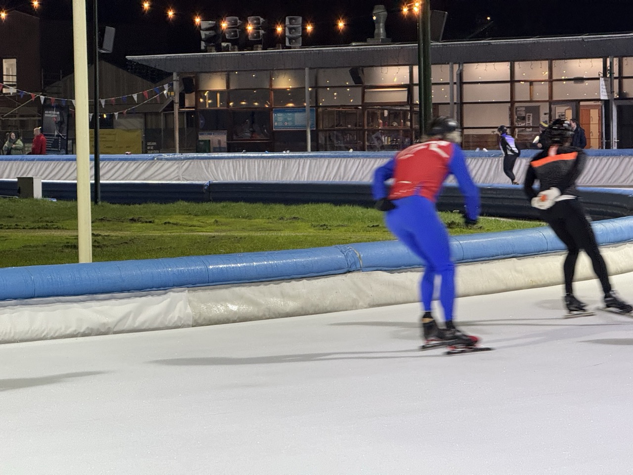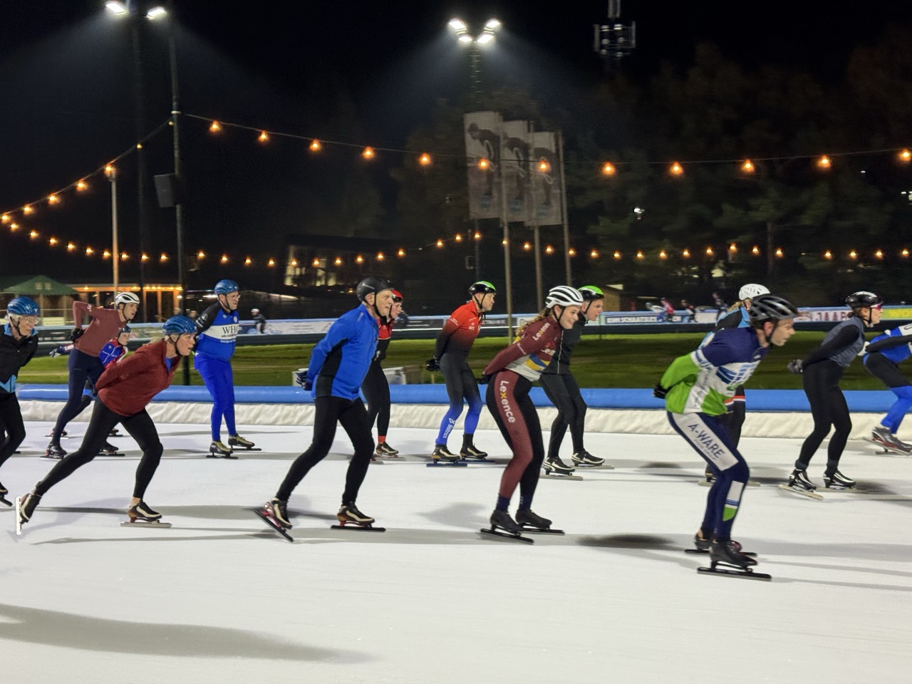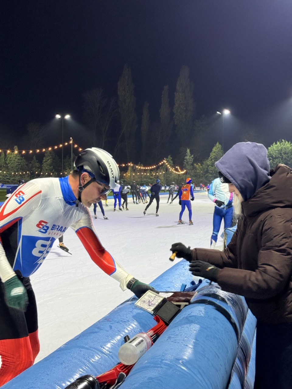 Zodoende stonden er om 21.11 uur ongeveer 200 deelnemers te trappelen om te starten, die na de stempelkaart controle het ijs op mochten. De start begon een paar minuten later dan gepland, omdat de ijsmachines nog niet klaar waren met de extra dweil in de beperkte tijd tussen het trainingsuur en de start. Dat bracht de deelnemers niet van hun stuk, want die hadden er zin om hun ronden te gaan rijden op deze mooie droge avond.