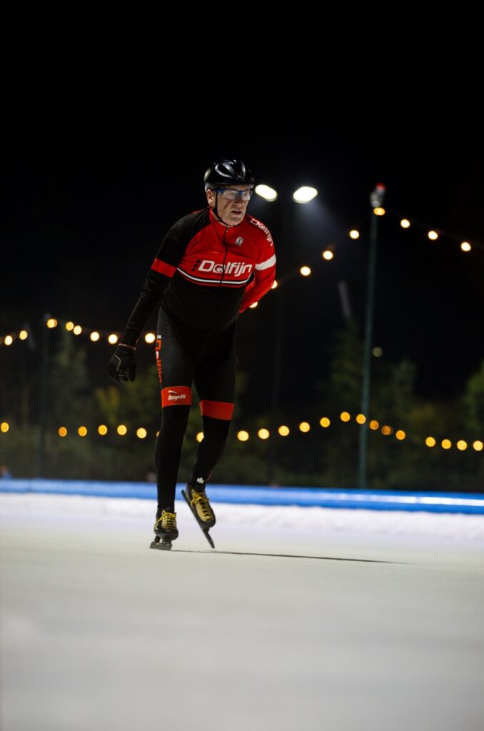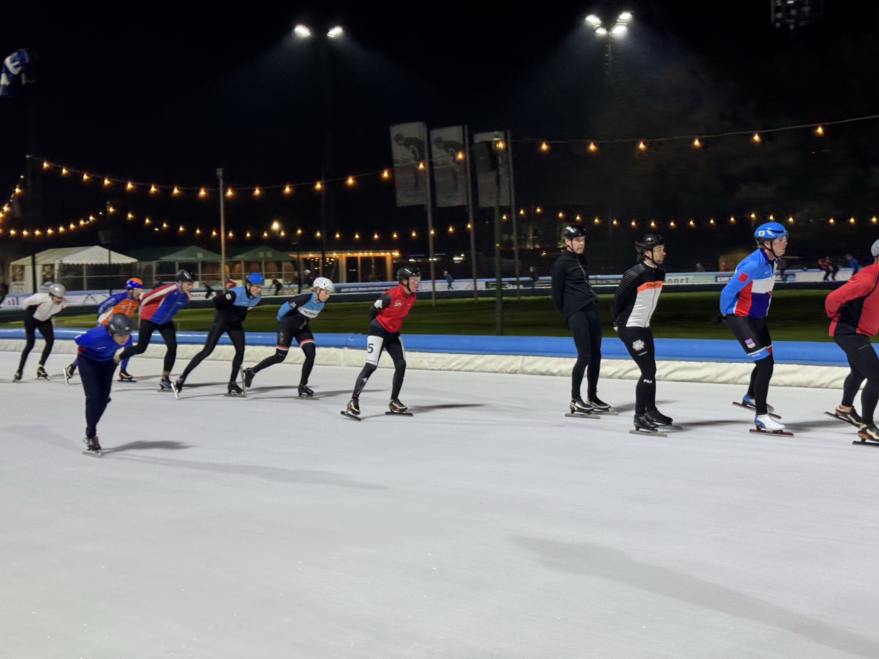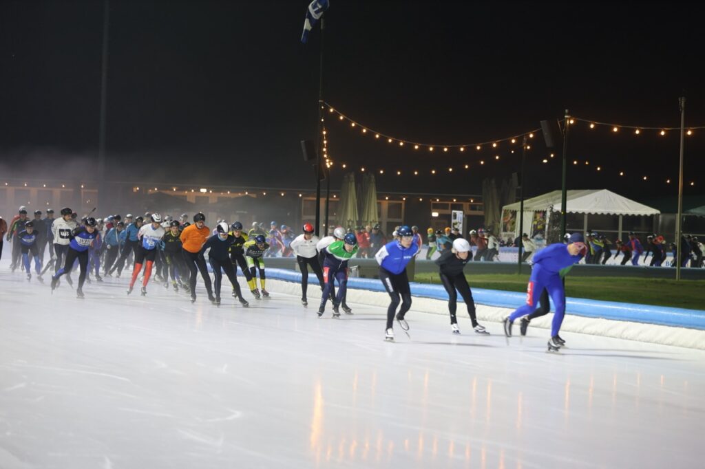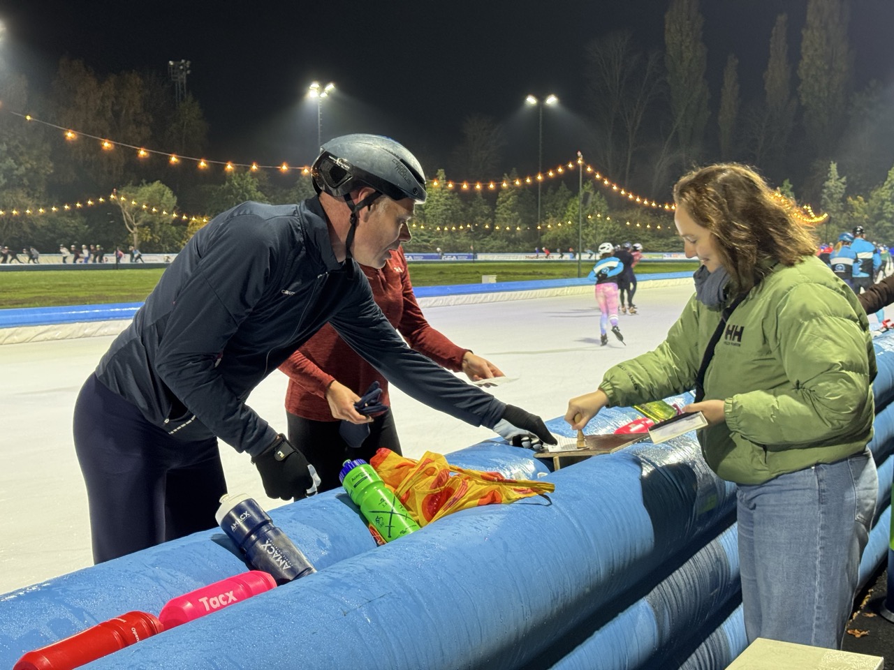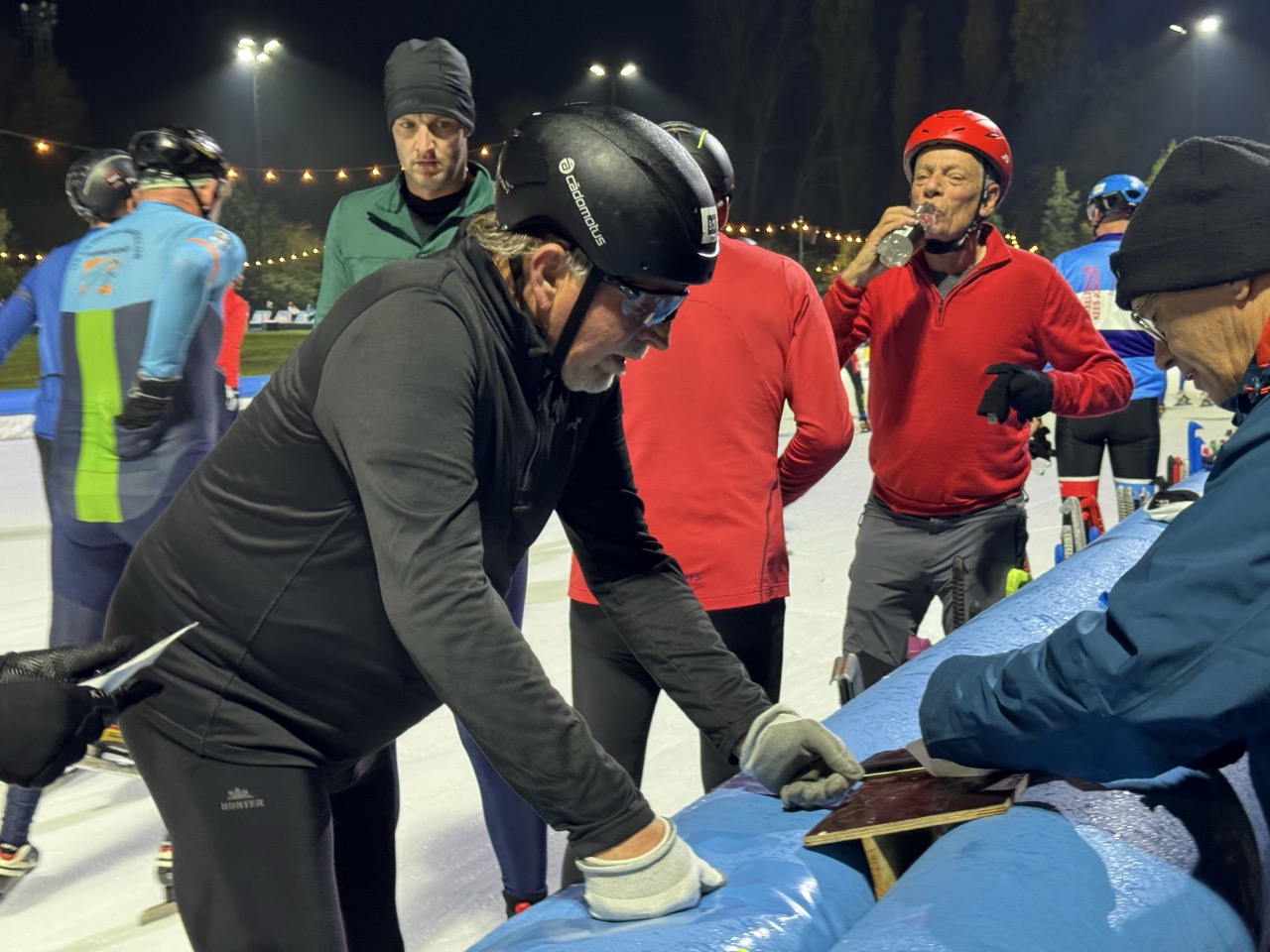 Zodoende stonden er om 21.11 uur ongeveer 200 deelnemers te trappelen om te starten, die na de stempelkaart controle het ijs op mochten. De start begon een paar minuten later dan gepland, omdat de ijsmachines nog niet klaar waren met de extra dweil in de beperkte tijd tussen het trainingsuur en de start. Dat bracht de deelnemers niet van hun stuk, want die hadden er zin om hun ronden te gaan rijden op deze mooie droge avond.