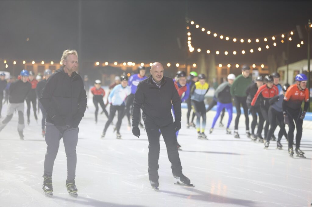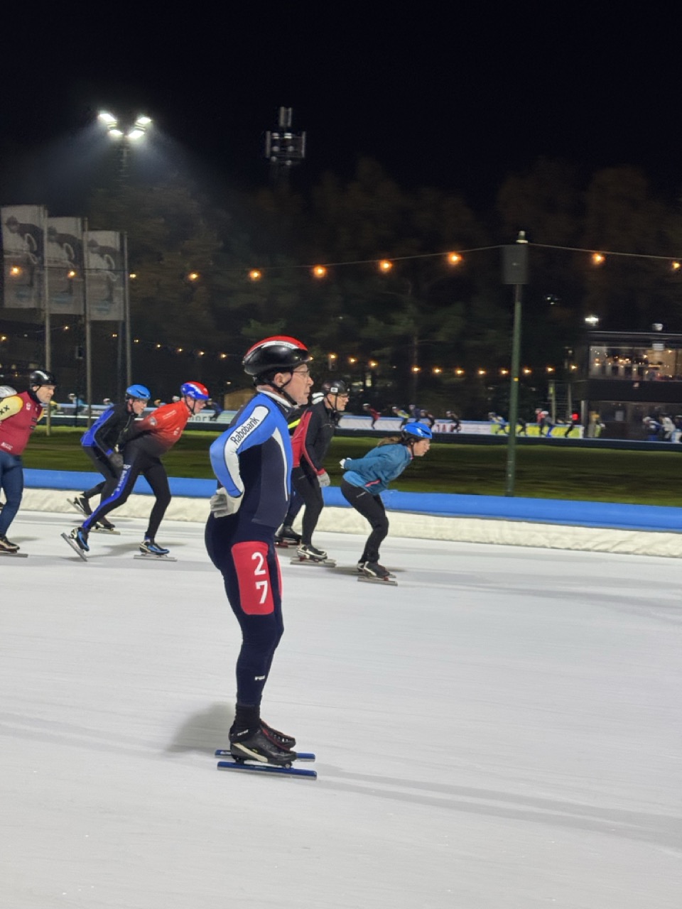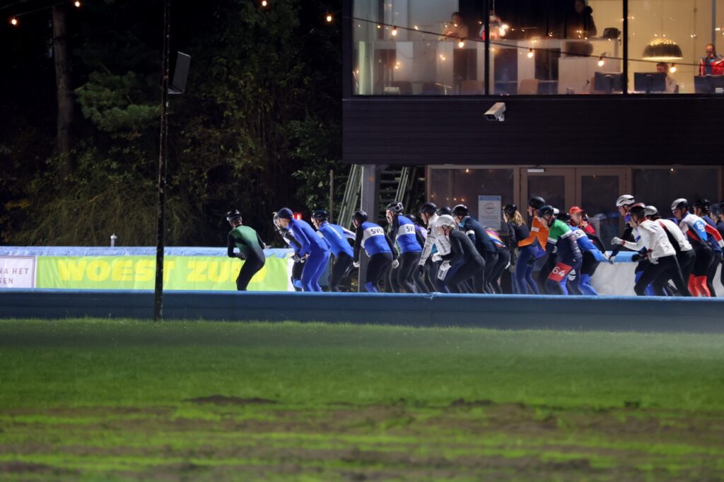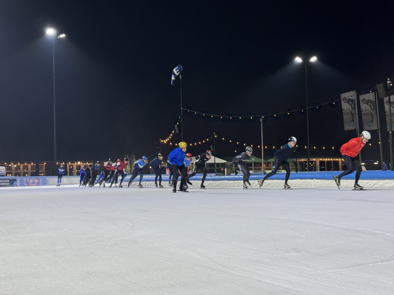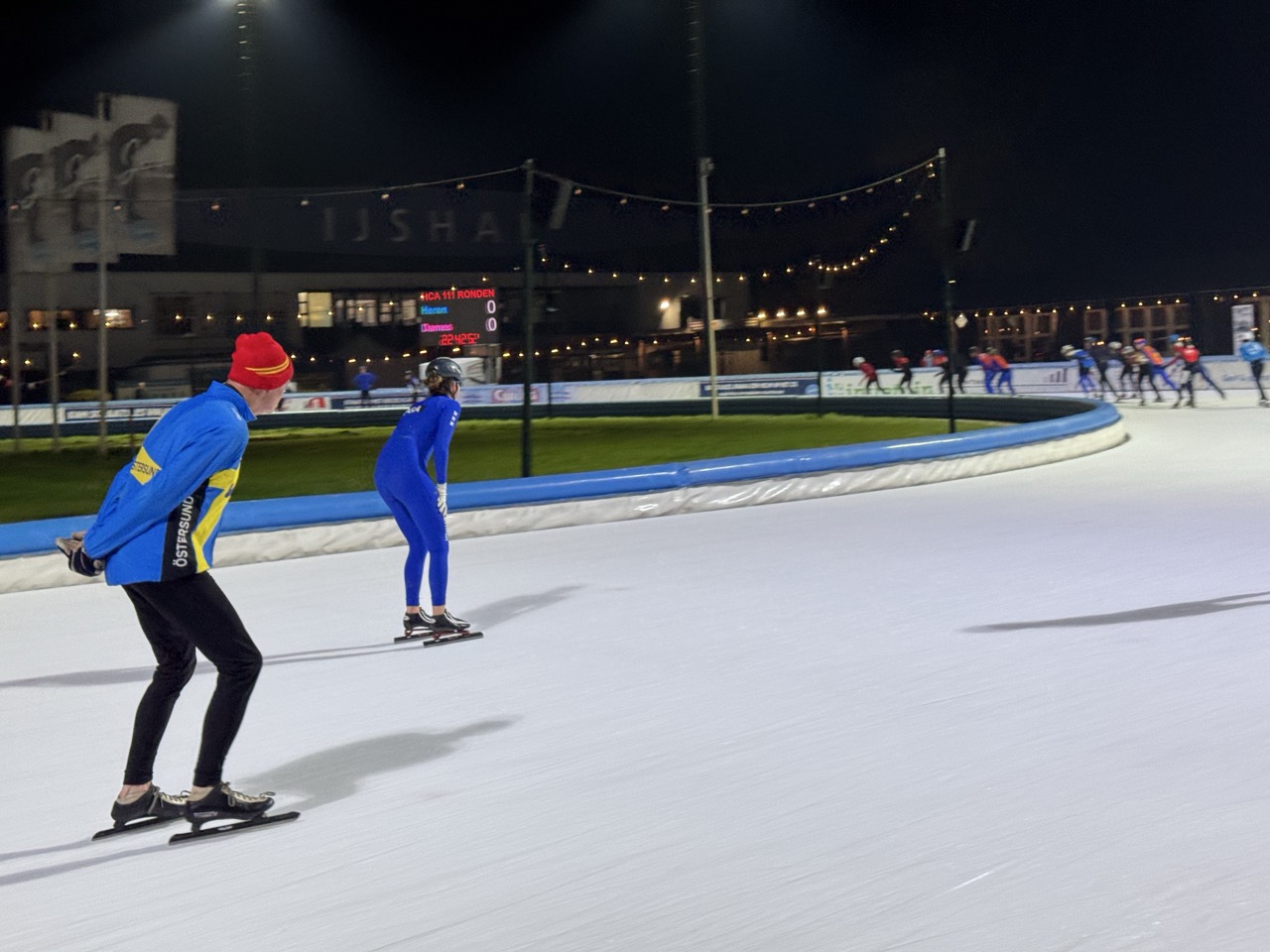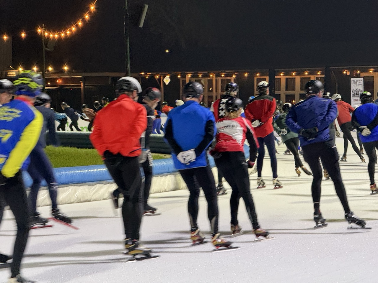 Zodoende stonden er om 21.11 uur ongeveer 200 deelnemers te trappelen om te starten, die na de stempelkaart controle het ijs op mochten. De start begon een paar minuten later dan gepland, omdat de ijsmachines nog niet klaar waren met de extra dweil in de beperkte tijd tussen het trainingsuur en de start. Dat bracht de deelnemers niet van hun stuk, want die hadden er zin om hun ronden te gaan rijden op deze mooie droge avond.
