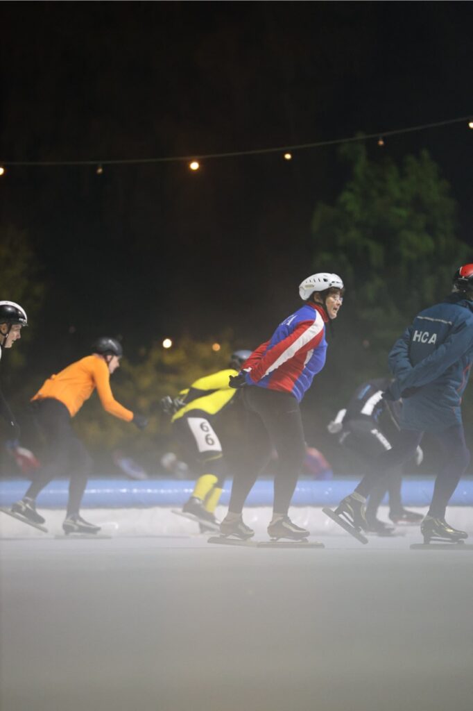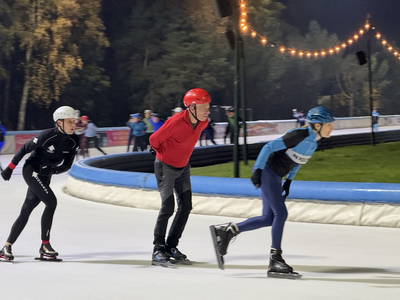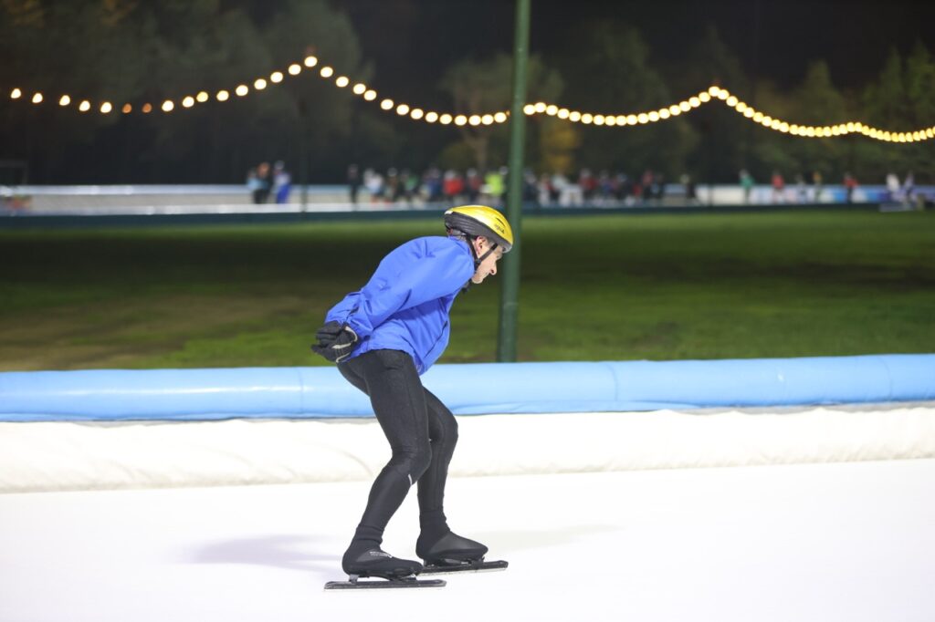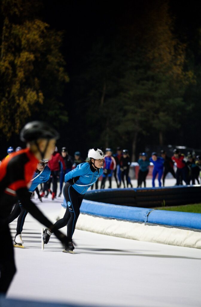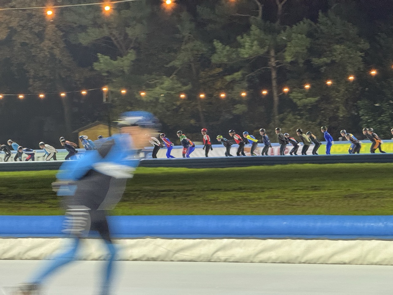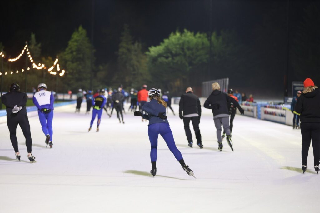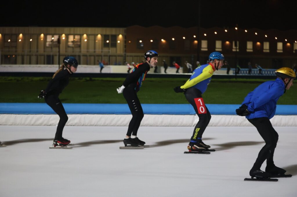 Zodoende stonden er om 21.11 uur ongeveer 200 deelnemers te trappelen om te starten, die na de stempelkaart controle het ijs op mochten. De start begon een paar minuten later dan gepland, omdat de ijsmachines nog niet klaar waren met de extra dweil in de beperkte tijd tussen het trainingsuur en de start. Dat bracht de deelnemers niet van hun stuk, want die hadden er zin om hun ronden te gaan rijden op deze mooie droge avond.