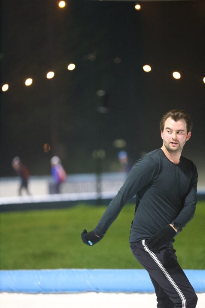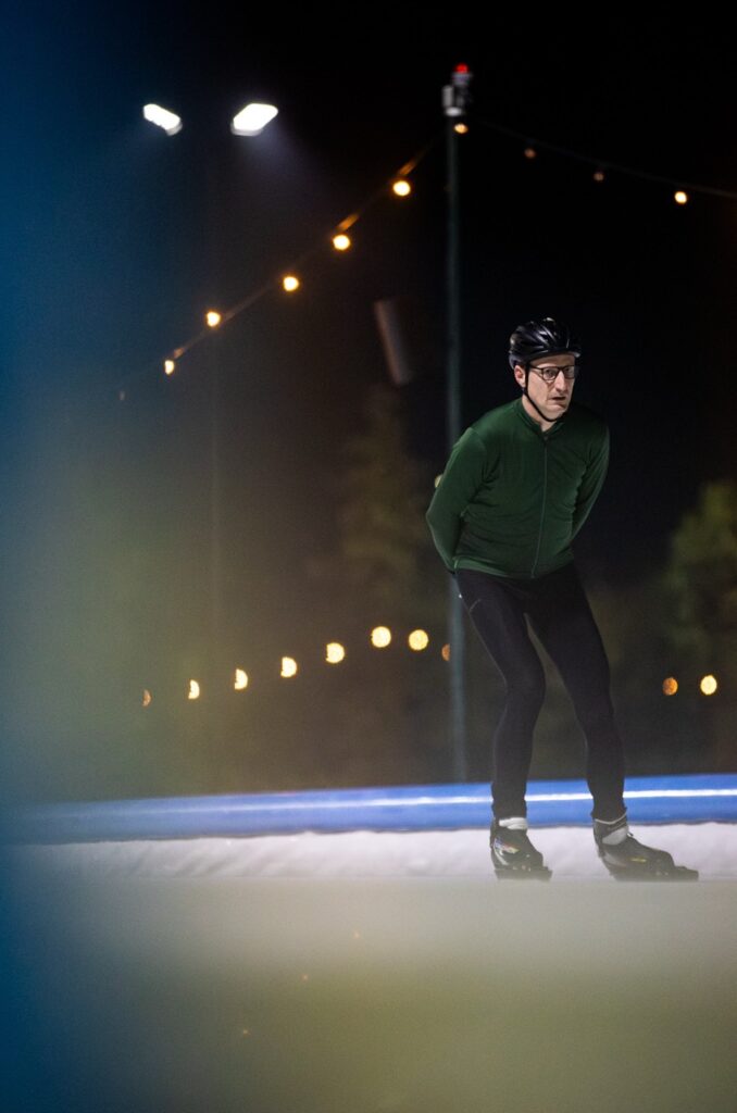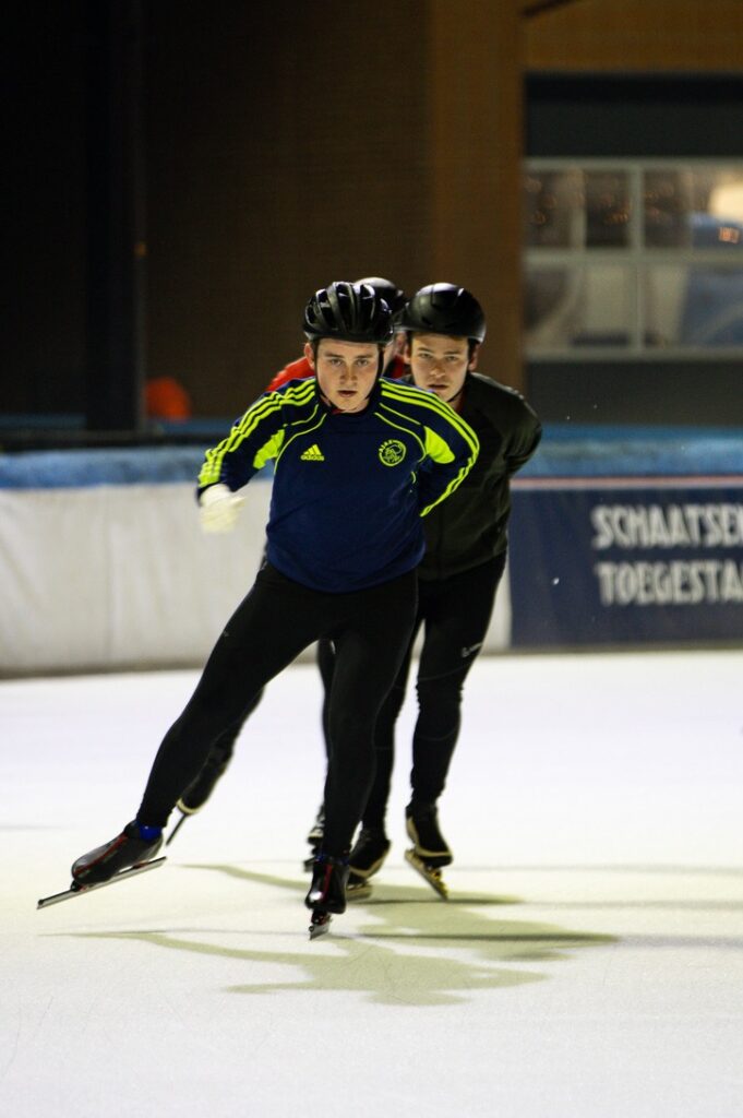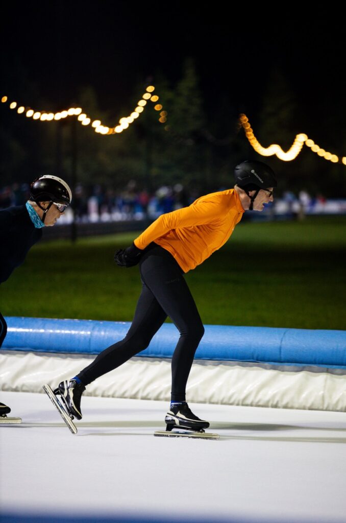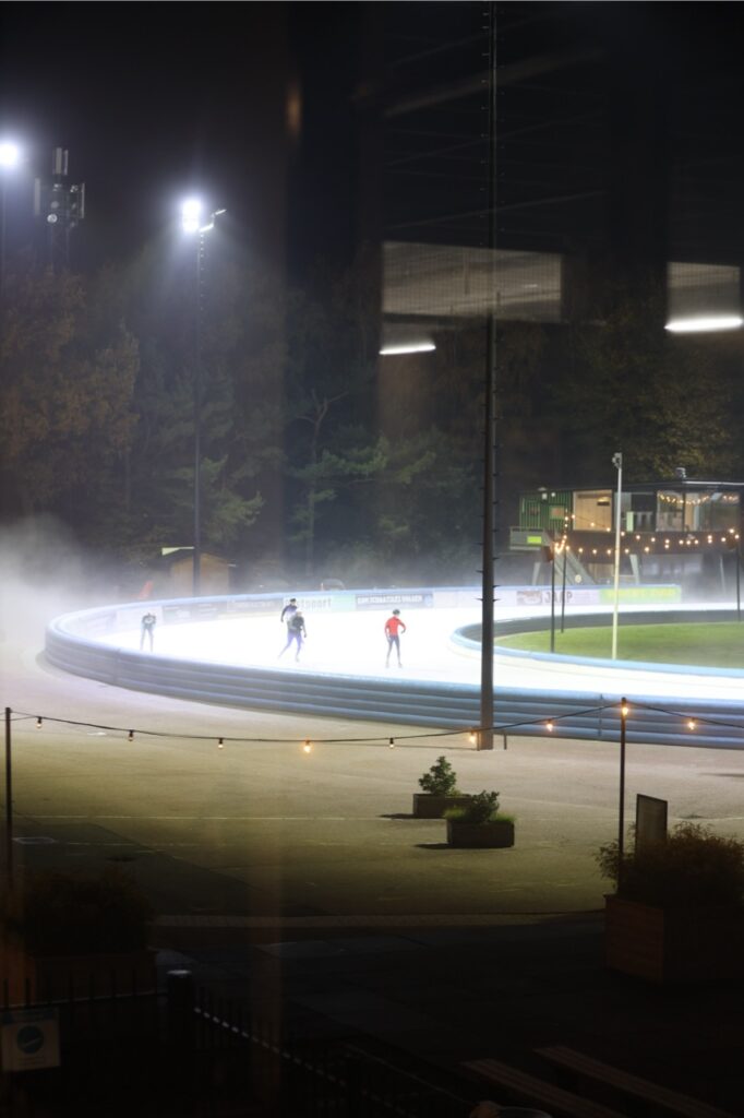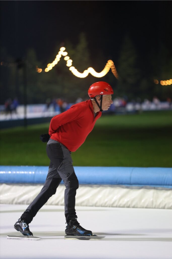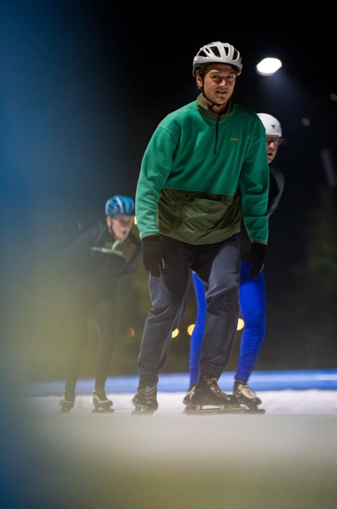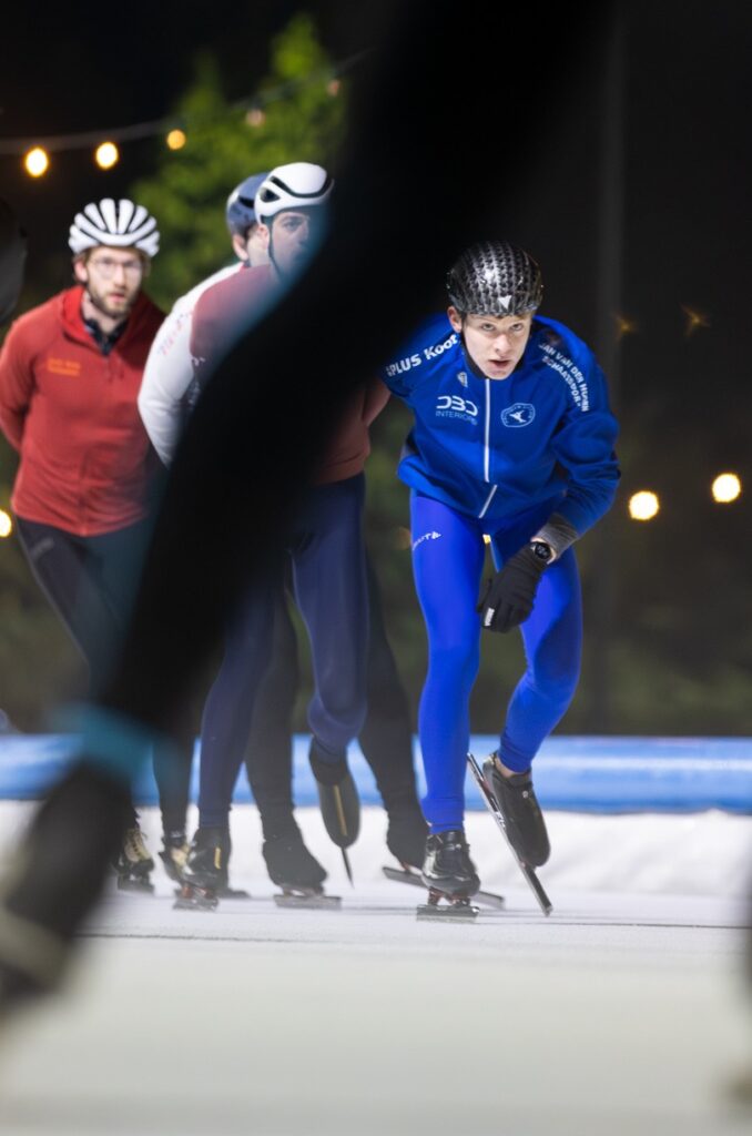 Zodoende stonden er om 21.11 uur ongeveer 200 deelnemers te trappelen om te starten, die na de stempelkaart controle het ijs op mochten. De start begon een paar minuten later dan gepland, omdat de ijsmachines nog niet klaar waren met de extra dweil in de beperkte tijd tussen het trainingsuur en de start. Dat bracht de deelnemers niet van hun stuk, want die hadden er zin om hun ronden te gaan rijden op deze mooie droge avond.