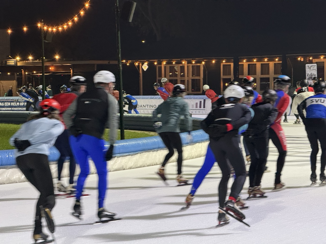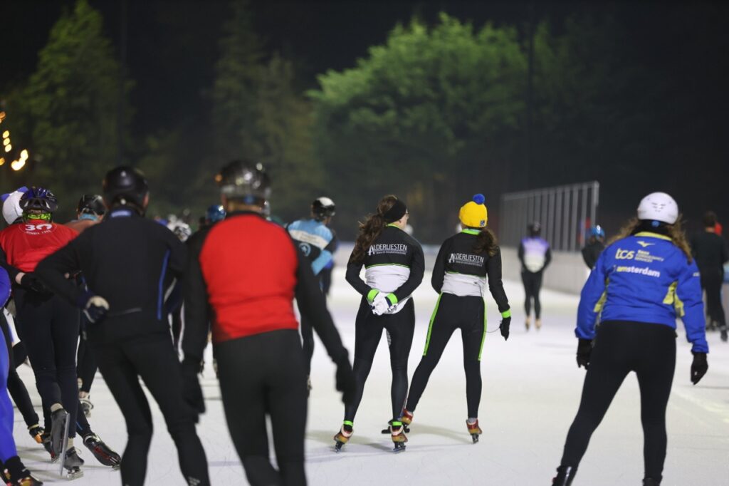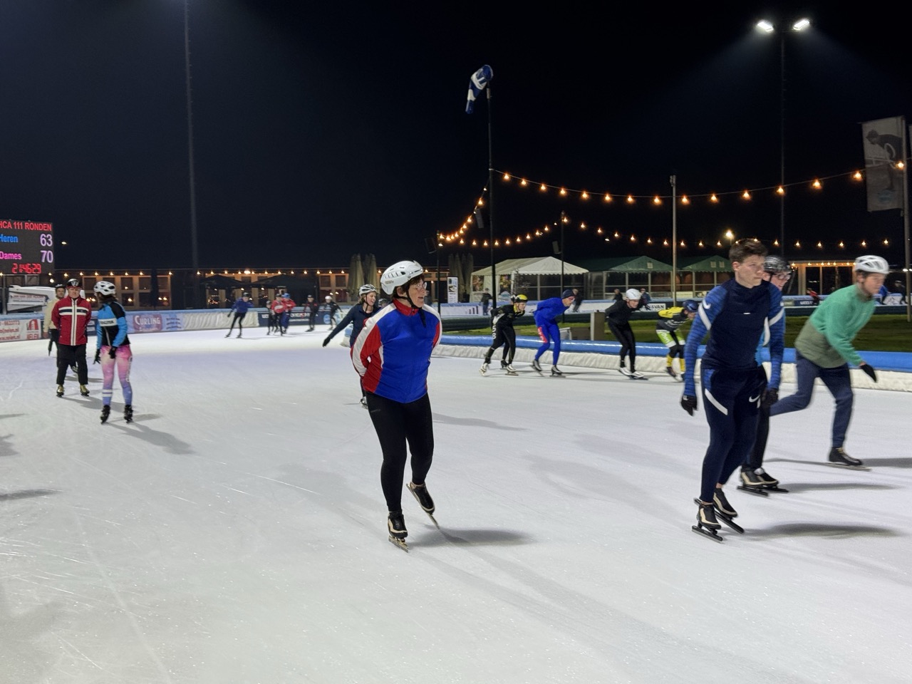 Na de start was de ijsbaan dan ook helemaal gevuld en een sliert van deelnemers schaatste over de Jaap-Eden baan. Iedereen schaatst op zijn/haar eigen tempo en wil natuurlijk de 111-ronden volbrengen.