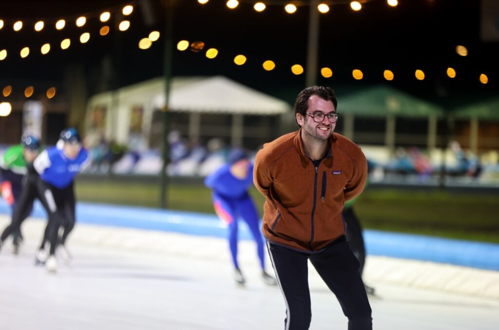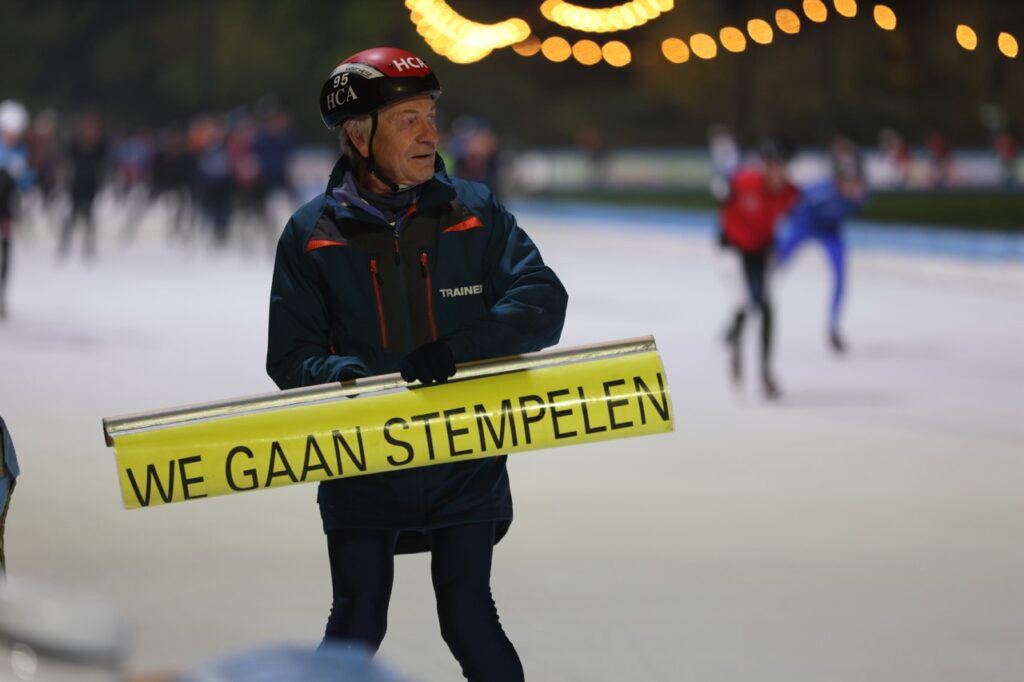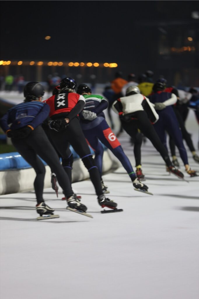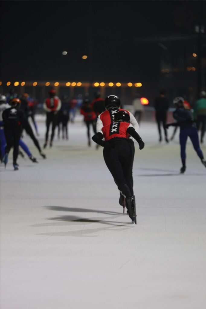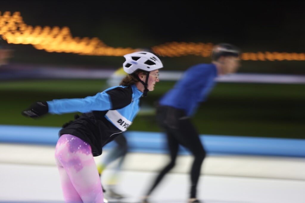 Na de start was de ijsbaan dan ook helemaal gevuld en een sliert van deelnemers schaatste over de Jaap-Eden baan. Iedereen schaatst op zijn/haar eigen tempo en wil natuurlijk de 111-ronden volbrengen.