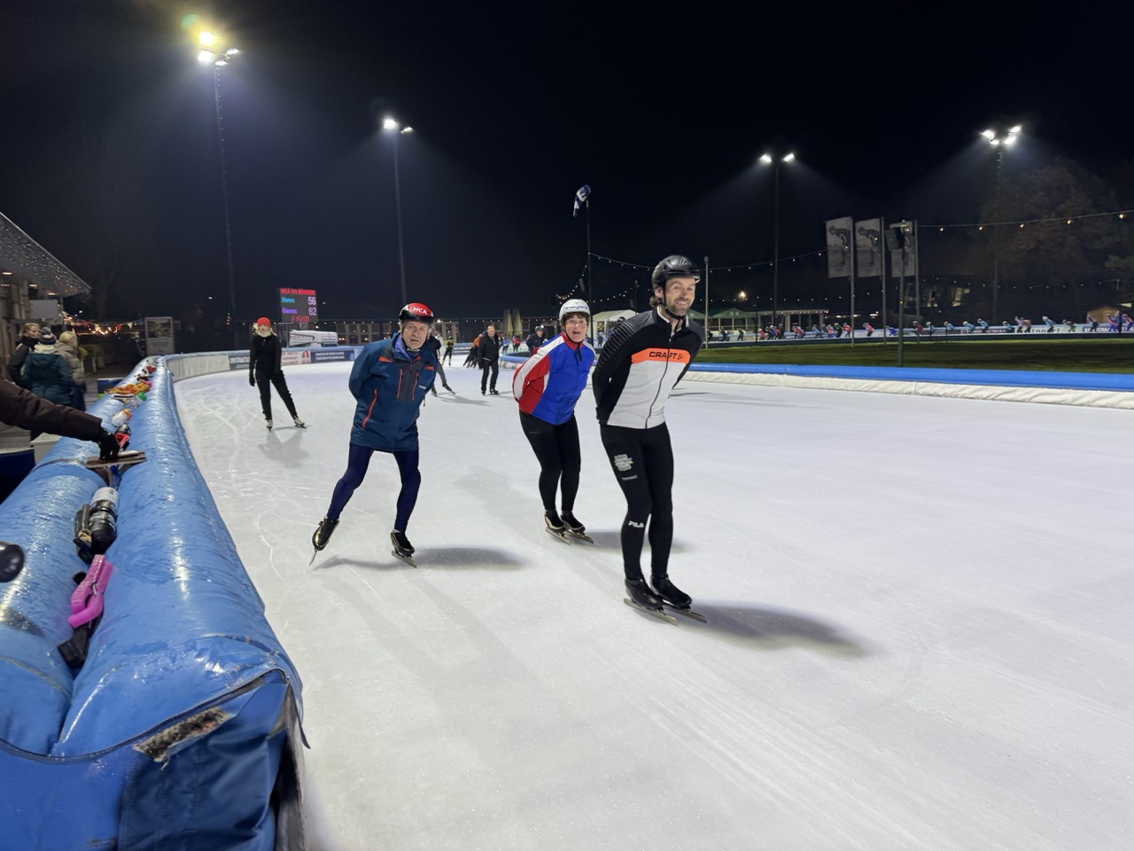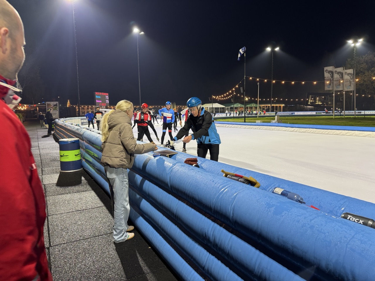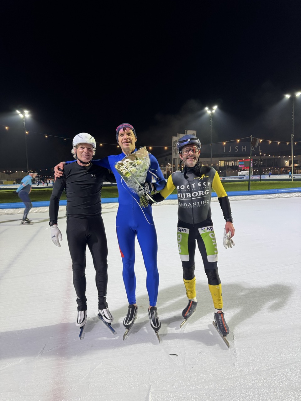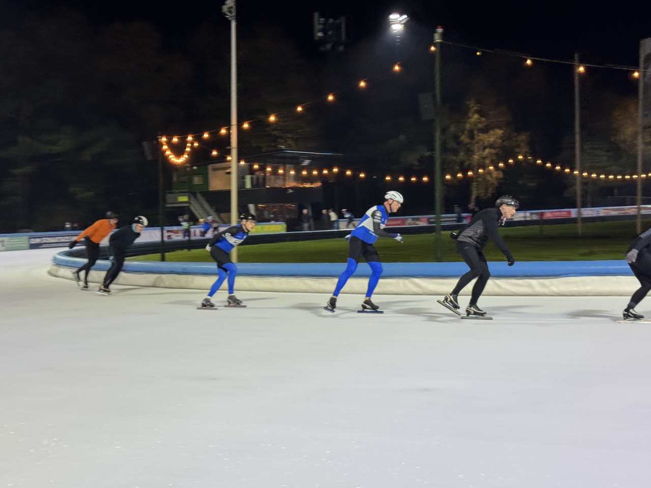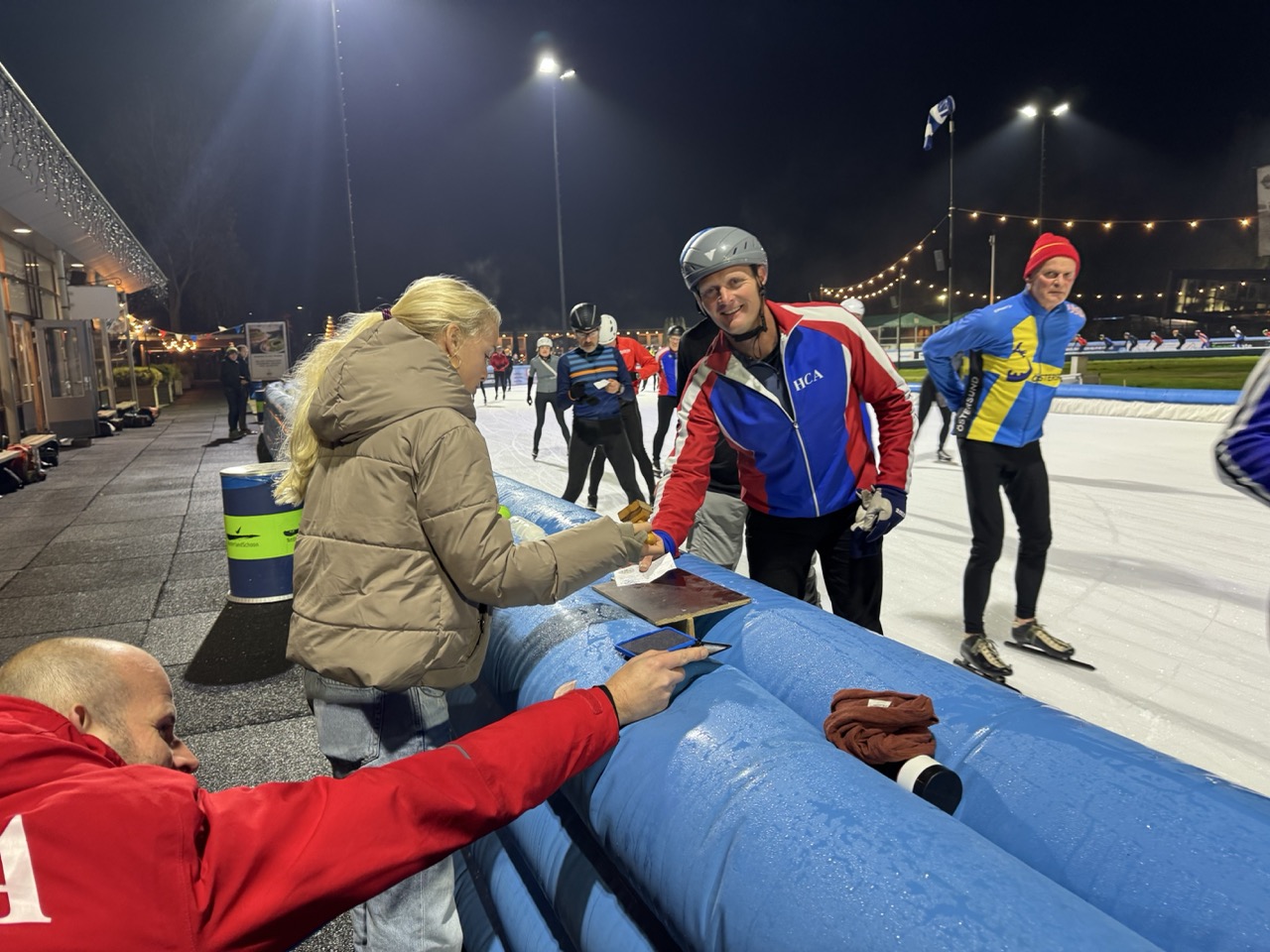 Na de tweede stempelpost op 33 ronden hadden de dames een korte stop, maar konden ze een aantal ronden aansluiten bij de kopgroep van de heren. Dat maakt het voor de rondetellers overzichtelijk. Toch lag het tempo van de heren iets hoger, en verloren ze de aansluiting. Gelukkig werden de dames opgevangen in de groep van de schaatsschool. Met nog 2 ronden te gaan voor de heren ging Niels Siemons demarreren en kwam hij uiteindelijk als eerste solo over de finish. Rutger Beekman en Roel Gremmer gingen daarna sprinten om respectievelijk plek 2 en 3, met als gevolg een volledig HCA podium. Na de finish, een mooie bos bloemen voor de winnaar en de nodige fotosessies met de drie heren, hebben zij hun prestatietocht met trots volbracht.