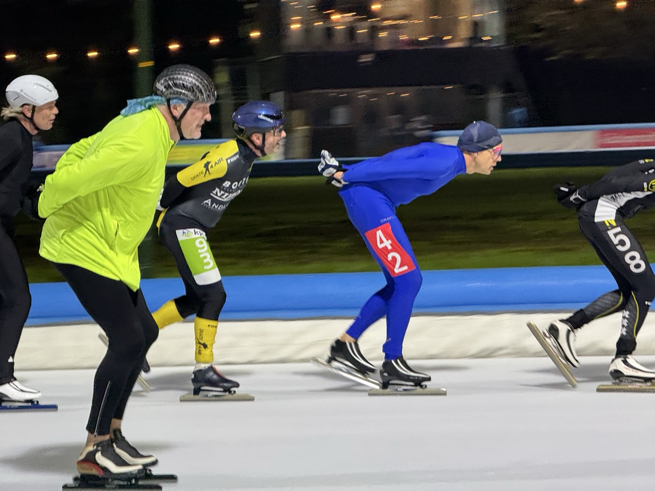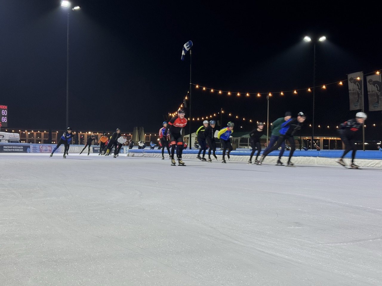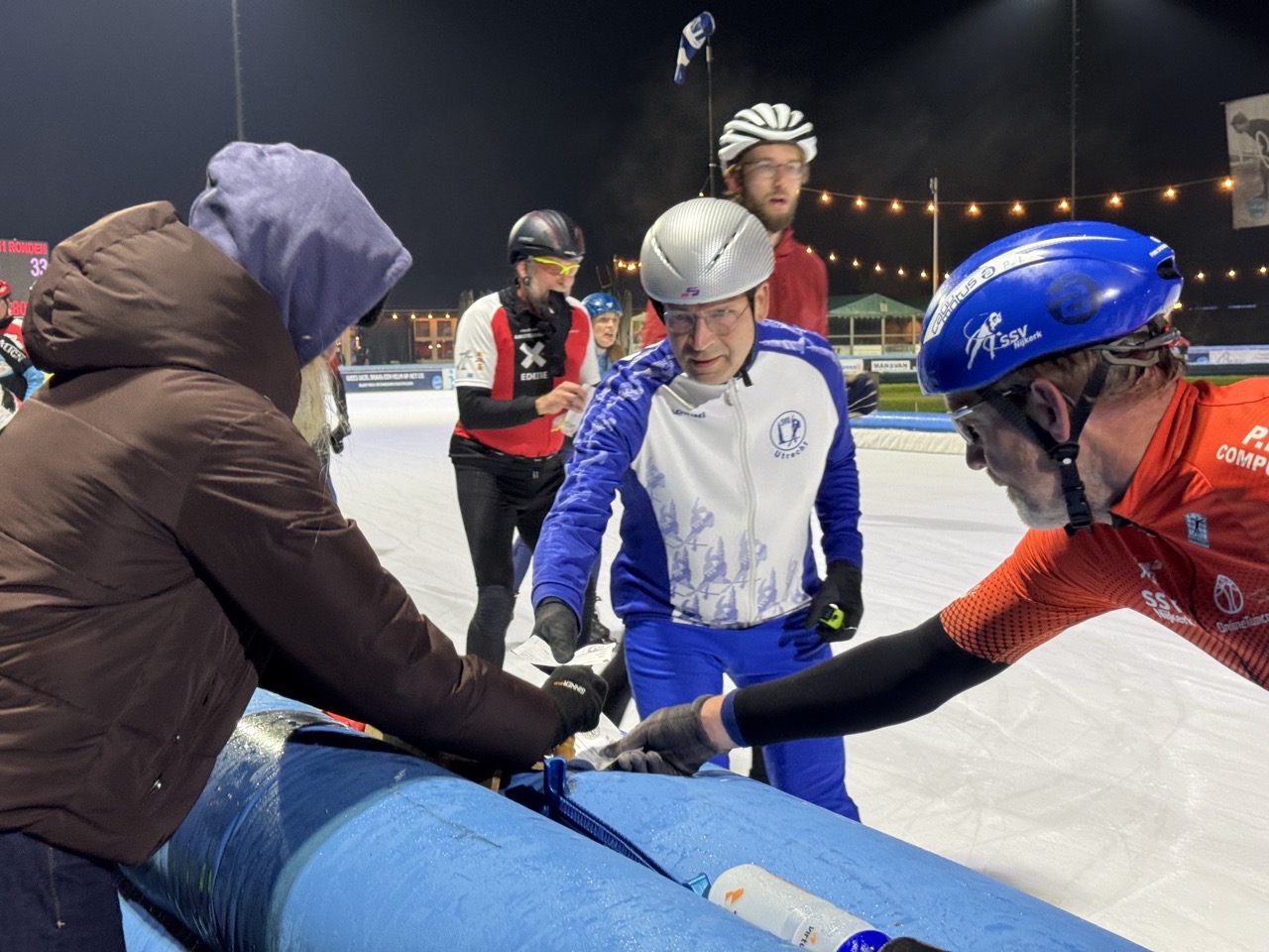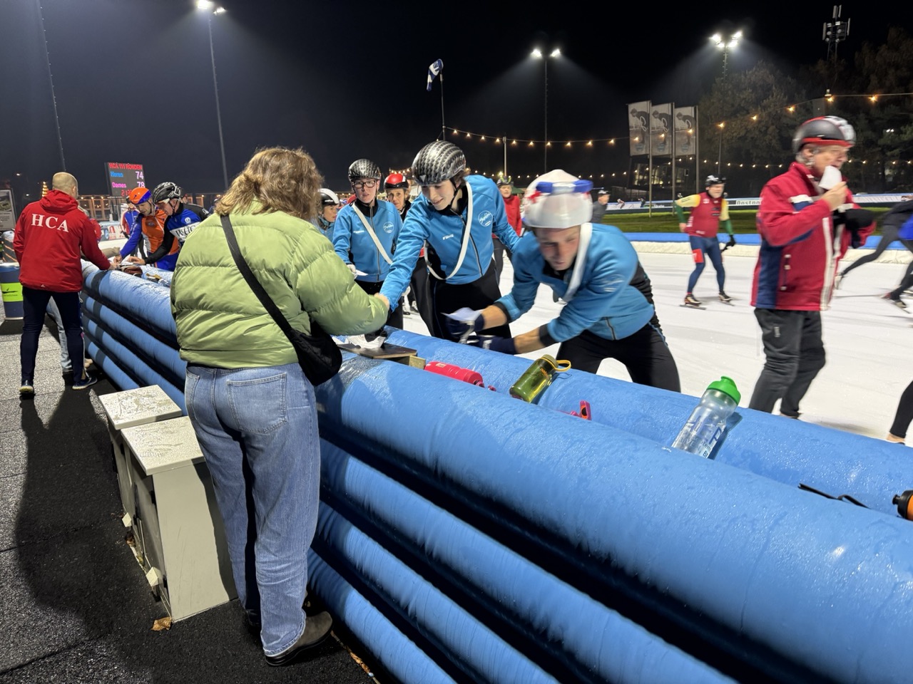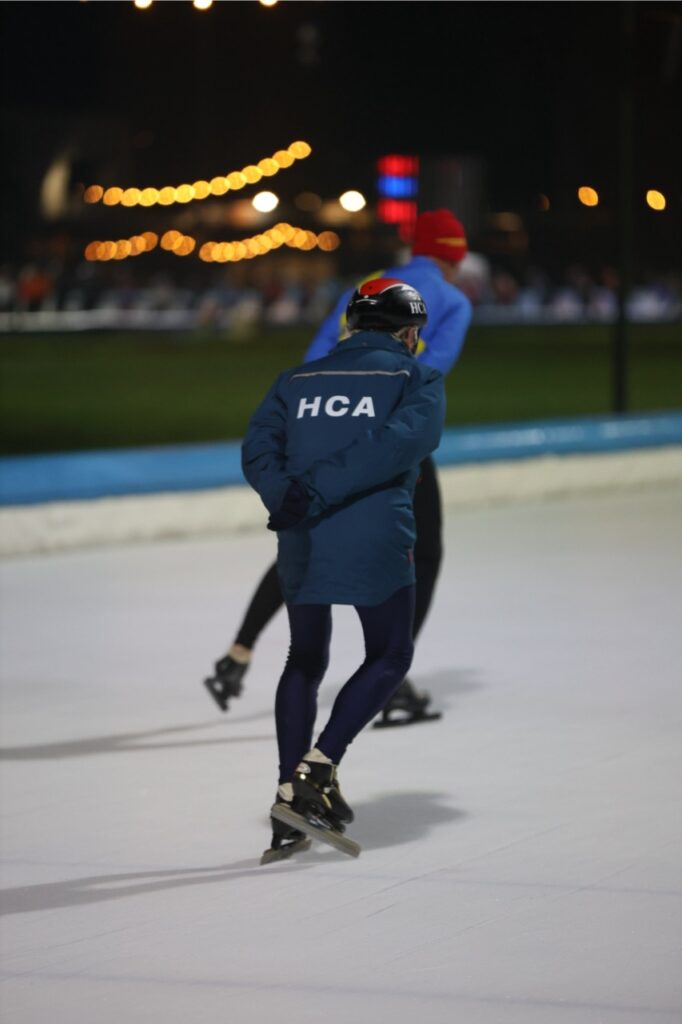 Na de tweede stempelpost op 33 ronden hadden de dames een korte stop, maar konden ze een aantal ronden aansluiten bij de kopgroep van de heren. Dat maakt het voor de rondetellers overzichtelijk. Toch lag het tempo van de heren iets hoger, en verloren ze de aansluiting. Gelukkig werden de dames opgevangen in de groep van de schaatsschool. Met nog 2 ronden te gaan voor de heren ging Niels Siemons demarreren en kwam hij uiteindelijk als eerste solo over de finish. Rutger Beekman en Roel Gremmer gingen daarna sprinten om respectievelijk plek 2 en 3, met als gevolg een volledig HCA podium. Na de finish, een mooie bos bloemen voor de winnaar en de nodige fotosessies met de drie heren, hebben zij hun prestatietocht met trots volbracht.