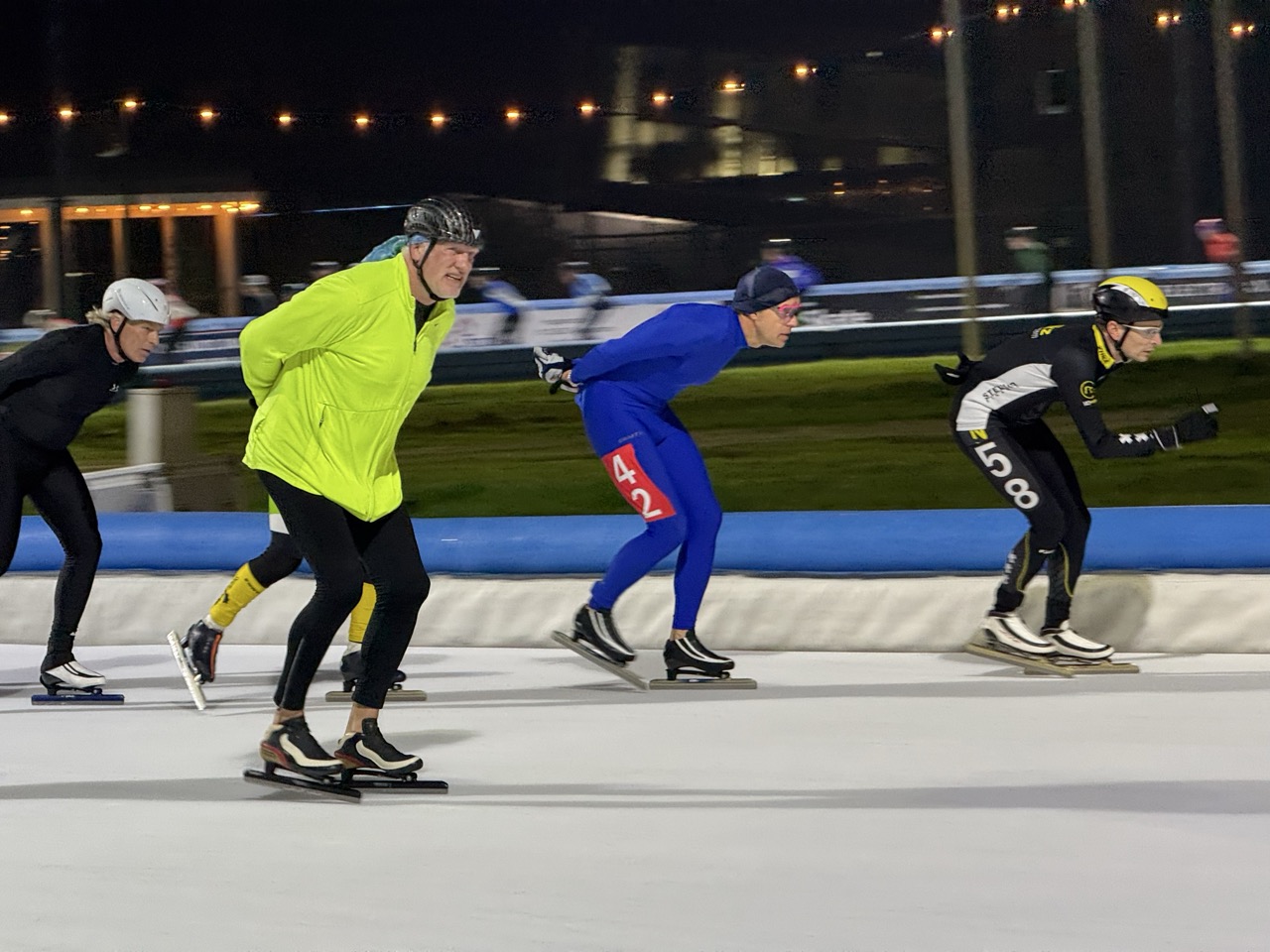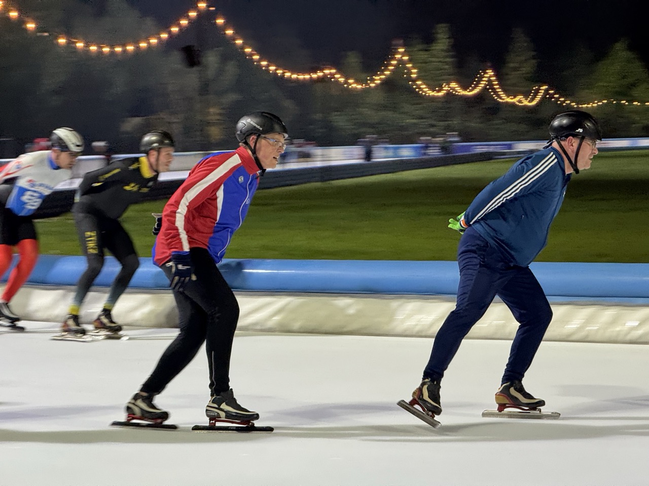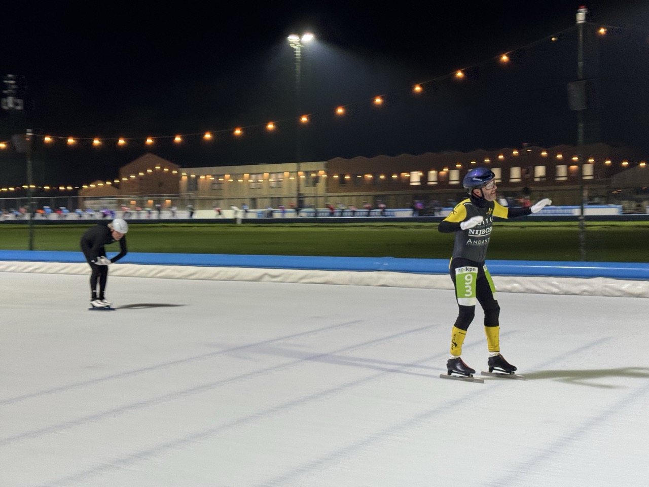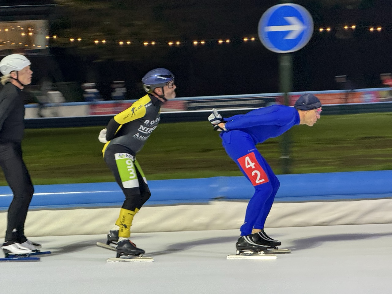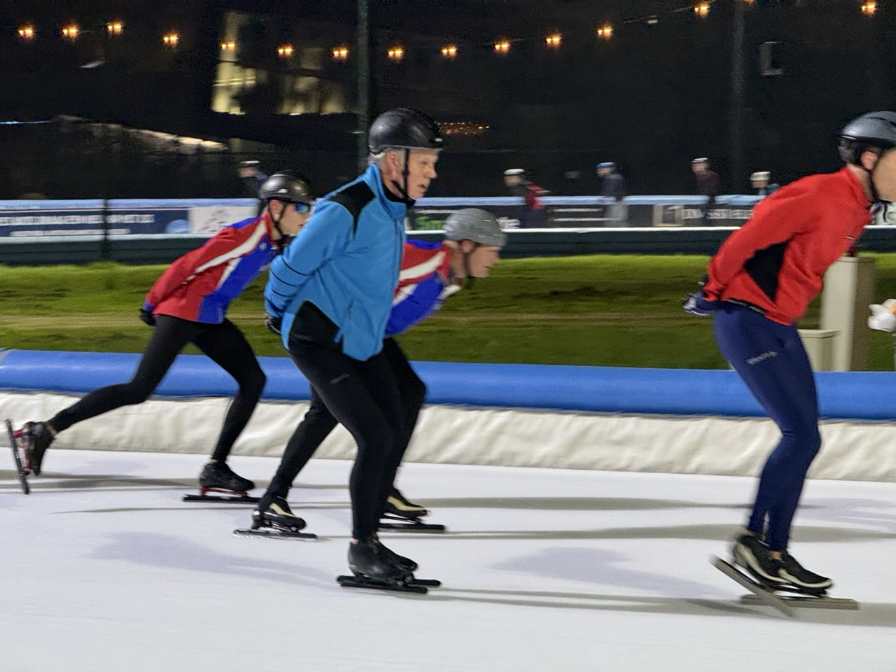 Na de tweede stempelpost op 33 ronden hadden de dames een korte stop, maar konden ze een aantal ronden aansluiten bij de kopgroep van de heren. Dat maakt het voor de rondetellers overzichtelijk. Toch lag het tempo van de heren iets hoger, en verloren ze de aansluiting. Gelukkig werden de dames opgevangen in de groep van de schaatsschool. Met nog 2 ronden te gaan voor de heren ging Niels Siemons demarreren en kwam hij uiteindelijk als eerste solo over de finish. Rutger Beekman en Roel Gremmer gingen daarna sprinten om respectievelijk plek 2 en 3, met als gevolg een volledig HCA podium. Na de finish, een mooie bos bloemen voor de winnaar en de nodige fotosessies met de drie heren, hebben zij hun prestatietocht met trots volbracht.