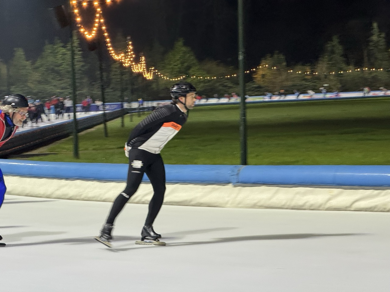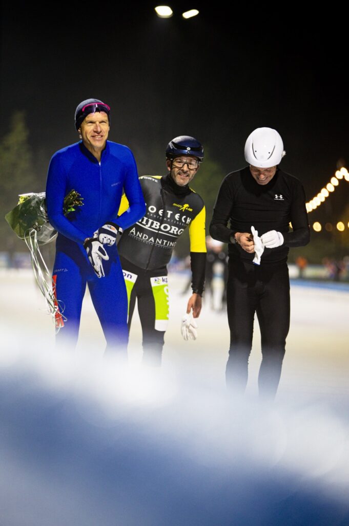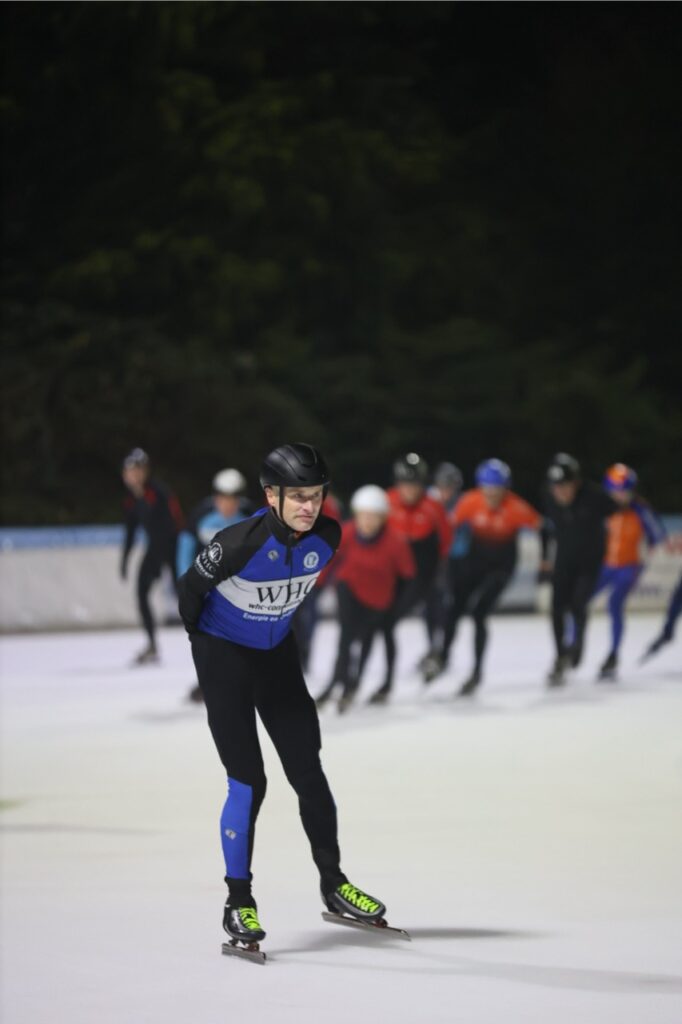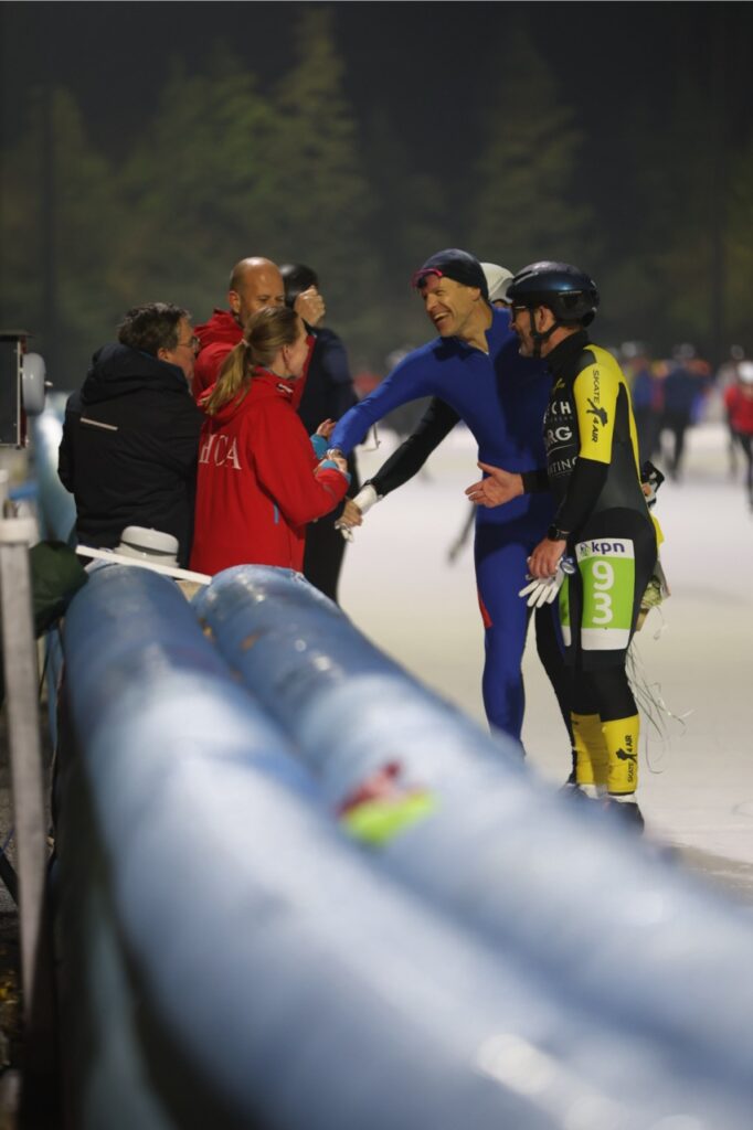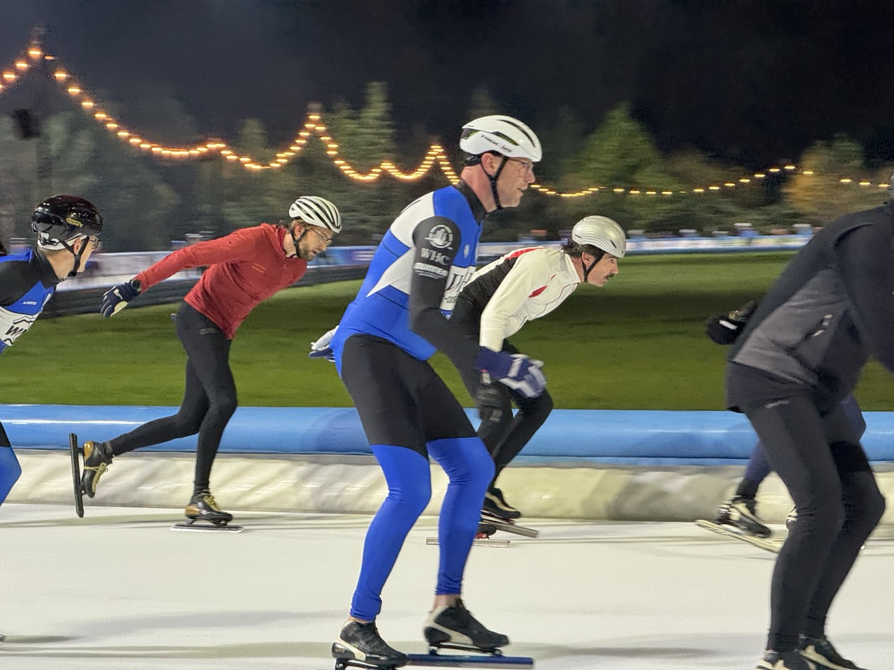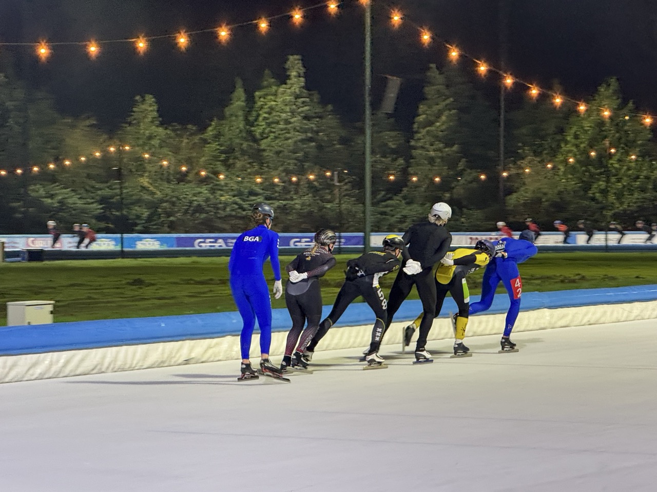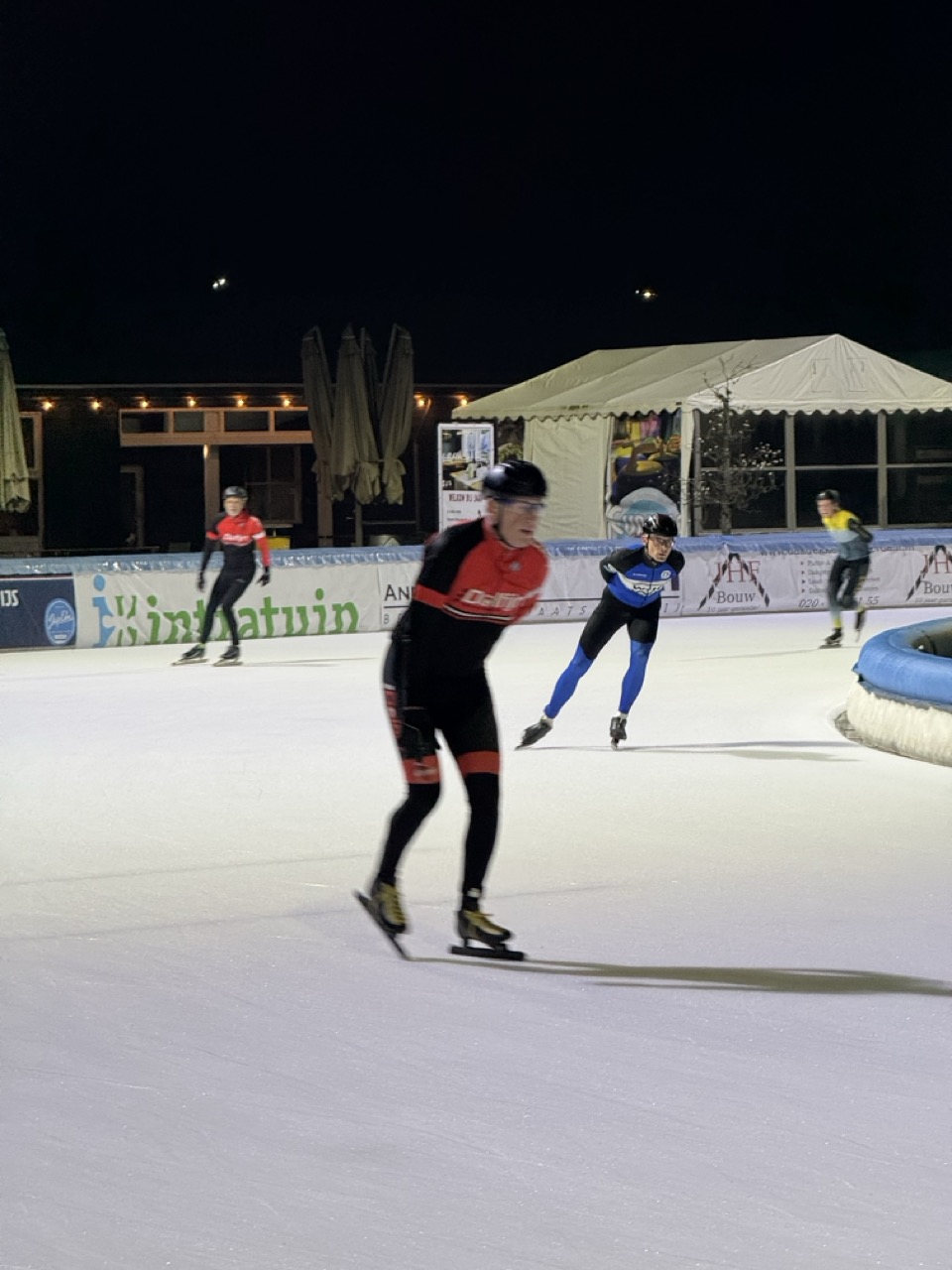 Na de tweede stempelpost op 33 ronden hadden de dames een korte stop, maar konden ze een aantal ronden aansluiten bij de kopgroep van de heren. Dat maakt het voor de rondetellers overzichtelijk. Toch lag het tempo van de heren iets hoger, en verloren ze de aansluiting. Gelukkig werden de dames opgevangen in de groep van de schaatsschool. Met nog 2 ronden te gaan voor de heren ging Niels Siemons demarreren en kwam hij uiteindelijk als eerste solo over de finish. Rutger Beekman en Roel Gremmer gingen daarna sprinten om respectievelijk plek 2 en 3, met als gevolg een volledig HCA podium. Na de finish, een mooie bos bloemen voor de winnaar en de nodige fotosessies met de drie heren, hebben zij hun prestatietocht met trots volbracht.