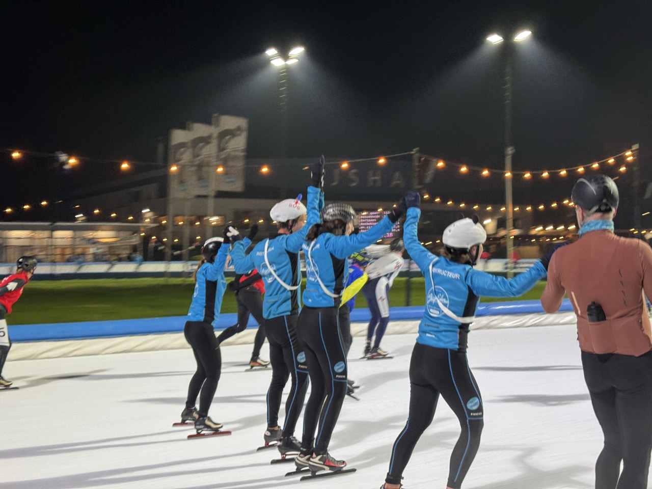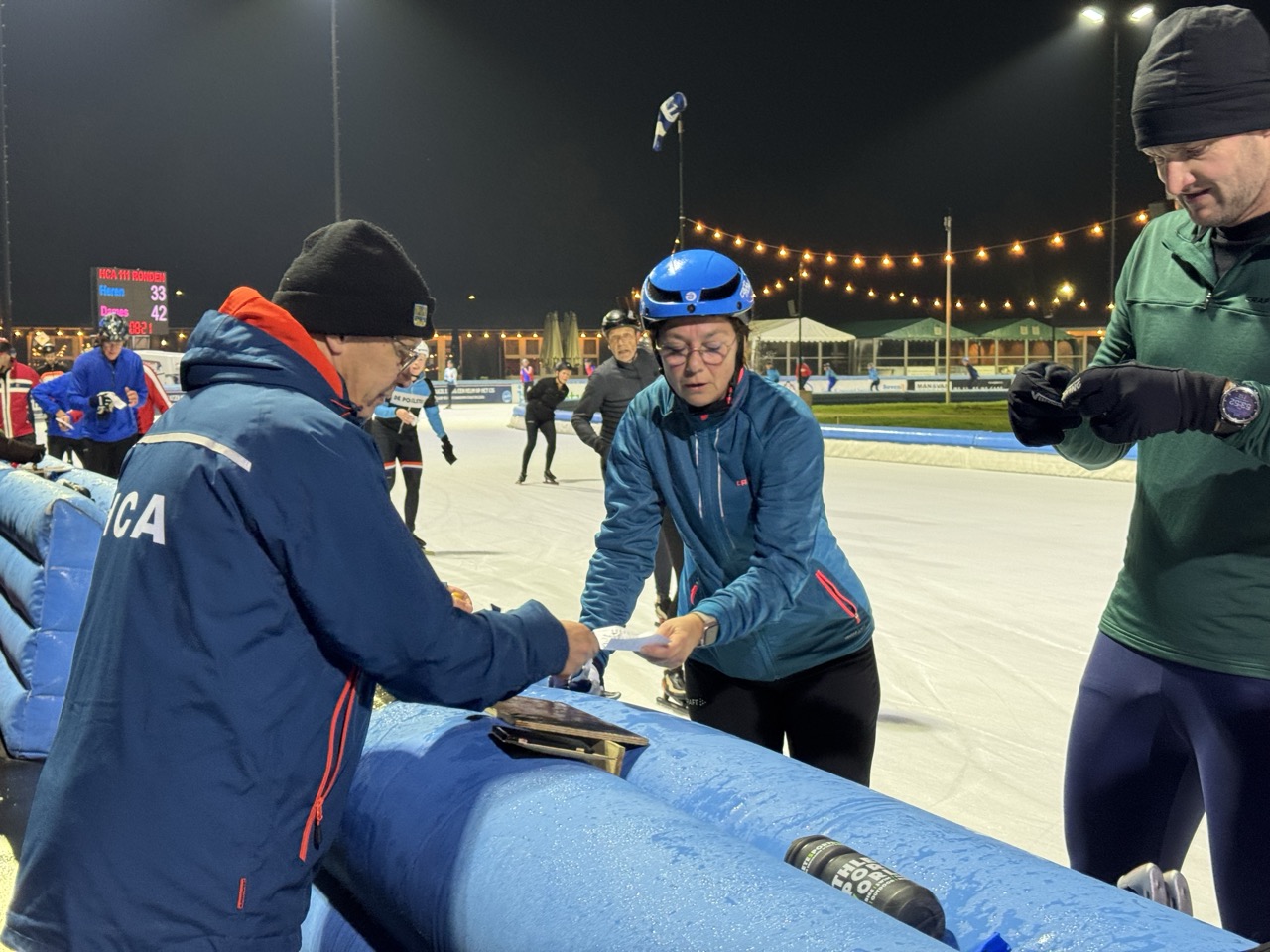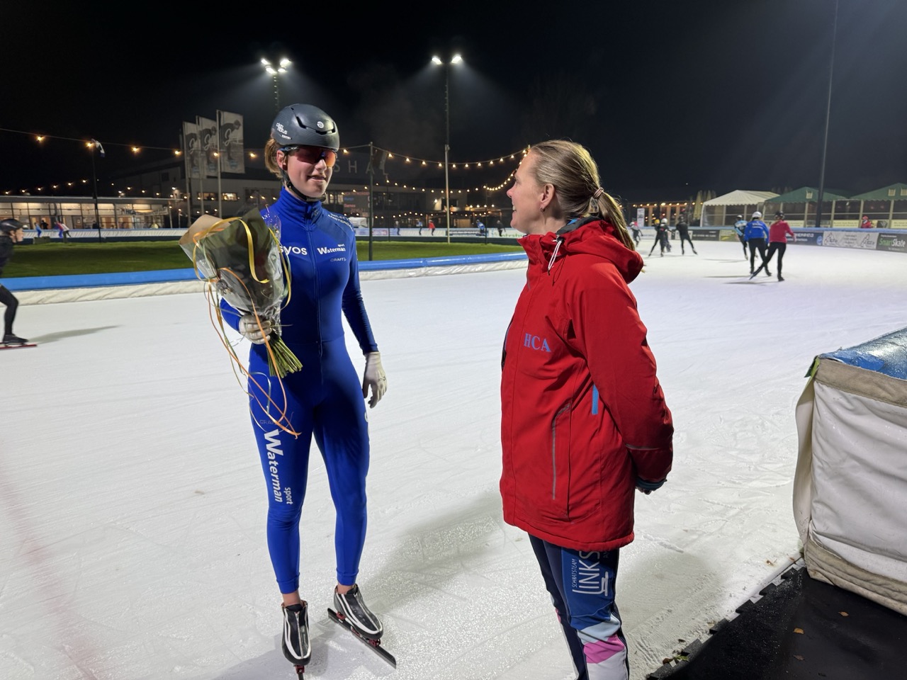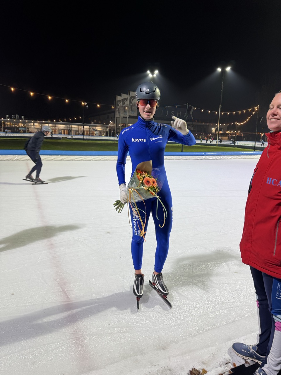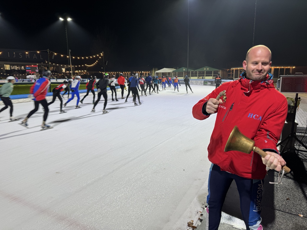 Na de tweede stempelpost op 33 ronden hadden de dames een korte stop, maar konden ze een aantal ronden aansluiten bij de kopgroep van de heren. Dat maakt het voor de rondetellers overzichtelijk. Toch lag het tempo van de heren iets hoger, en verloren ze de aansluiting. Gelukkig werden de dames opgevangen in de groep van de schaatsschool. Met nog 2 ronden te gaan voor de heren ging Niels Siemons demarreren en kwam hij uiteindelijk als eerste solo over de finish. Rutger Beekman en Roel Gremmer gingen daarna sprinten om respectievelijk plek 2 en 3, met als gevolg een volledig HCA podium. Na de finish, een mooie bos bloemen voor de winnaar en de nodige fotosessies met de drie heren, hebben zij hun prestatietocht met trots volbracht.