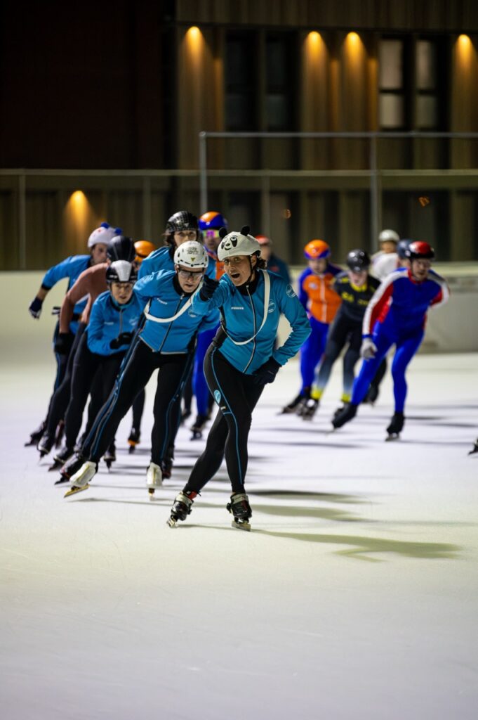 Bijzonder te vermelden is dat een belangrijk deel van de Schaatsschool trainers meedeed, onder het opzwiepende geluid van peleton-aanvoerder Anne-linde Paans.