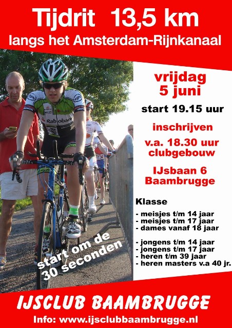 Woensdagavond 20 mei is er topsport in Baambrugge op op de in-line Skates. Zowel de landelijk top bij de dames als bij de heren komen voor de 3e Baancompetitie wedstrijd naar Baambrugge. Er zijn wedstrijden over 500 meter en de puntenwedstrijd over 50 ronden (10 kilometer). Viks-on-Wheels start die dag vanaf 19.00 uur en zal tot circa 21.15 uur duren. Voor o.a. de deelnemerslijst, kijk op www.ijsclubbaambrugge.nlOverigens nog een tip: Vrijdagavond 5 juni de tijdrit over 13,5 kilometer in Baambrugge, inschrijven vanaf 18.15 uur clubgebouw, start eerste deelnemer 19.15 uur. e-mail: info@ijsclubbaambrugge.nl