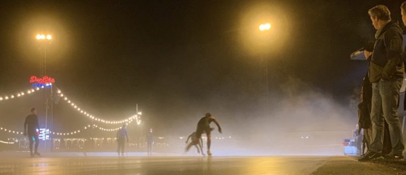 “Ping Ping” om 15.10 krijg ik een appje van Josje: “Zou je vanavond even mijn jeugdgroep willen overnemen?”. Ik app een duimpje terug en sta om 18.15u op het ijs met een stuk of 15 actieve koters waaronder mijn bloedeigen Ben. Het lesgeven gaat goed, hier schaatst de toekomst. Ik vraag me stilletjes af wanneer de eerste van deze jonkies mij voorbij zal gaan en vrees dat dat waarschijnlijk minder lang gaat duren dan ik leuk vind. Een stuk of 10 van de kids heeft vanavond een wedstrijd. Net zoals ik. Dus we doen een lichte training met wat poetswerk en een paar snelle meters, een glijstart en één staand startje. Voor mij was het geen ideale voorbereiding voor de wedstrijd, maar ach, ik wordt toch geen wereldkampioen meer. De machines komen op het ijs en de wedstrijd kan bijna beginnen.