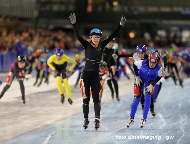C-junior Anna van den Bos geeft gisteren een geweldige prestatie geleverd. Op de Kardinge-ijsbaan in Groningen heeft ze het Nederlands Kampioenschap Jeugdmarathon gewonnen. Op de eindstreep klopte ze Kim Talsma en Savannah Audier. Proficiat, Anna! Klik hier voor een reactie van Anna op Schaatsen.nl.
