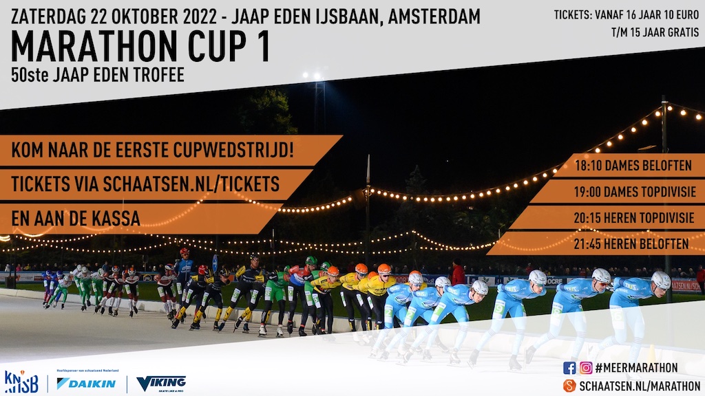 Op zaterdag 22 oktober komt het marathon peloton weer naar de Jaap Edenbaan in Amsterdam voor de 50ste Jaap Eden Trofee, tevens de 1ste wedstrijd om de Marathon Cup.