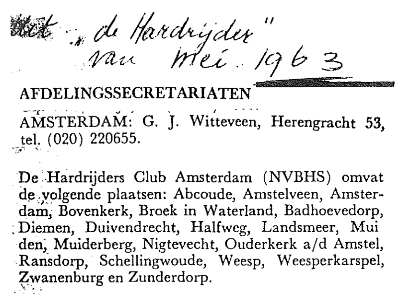 Onderstaand artikel werd overgenomen uit het clubblad “de Hardrijder” van mei 1961 en werd geschreven door wijlen Herman Buyen