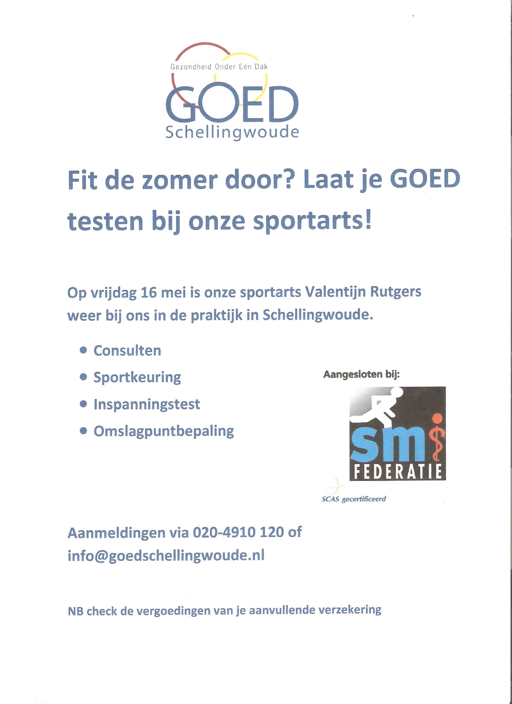 Bericht van GOED Schellingwoude: Beste mensen, bij deze willen we jullie leden graag informeren over de mogelijkheid om onze sportarts Valentijn Rutgers te consulteren en-of een fietstest te doen. Vrijdag 16 mei is de eerstvolgende mogelijkheid.