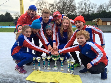 Die werd door de Deventer IJsclub geopend met een kleine voorsprong, maar onze pupillen maakten het snel goed. We wonnen! Eeuwige concurrent Koggenland was dan weliswaar in tijd sneller, maar wij wonnen onze manche en…die prachtige grote beker!