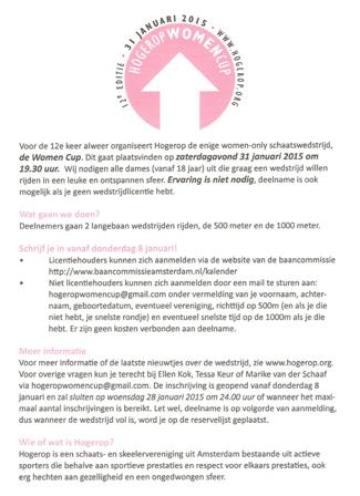 Hogerop Women Cup 2015 op 31 januari a.s.